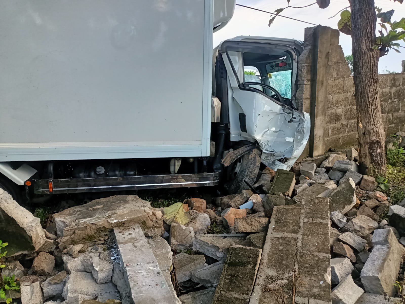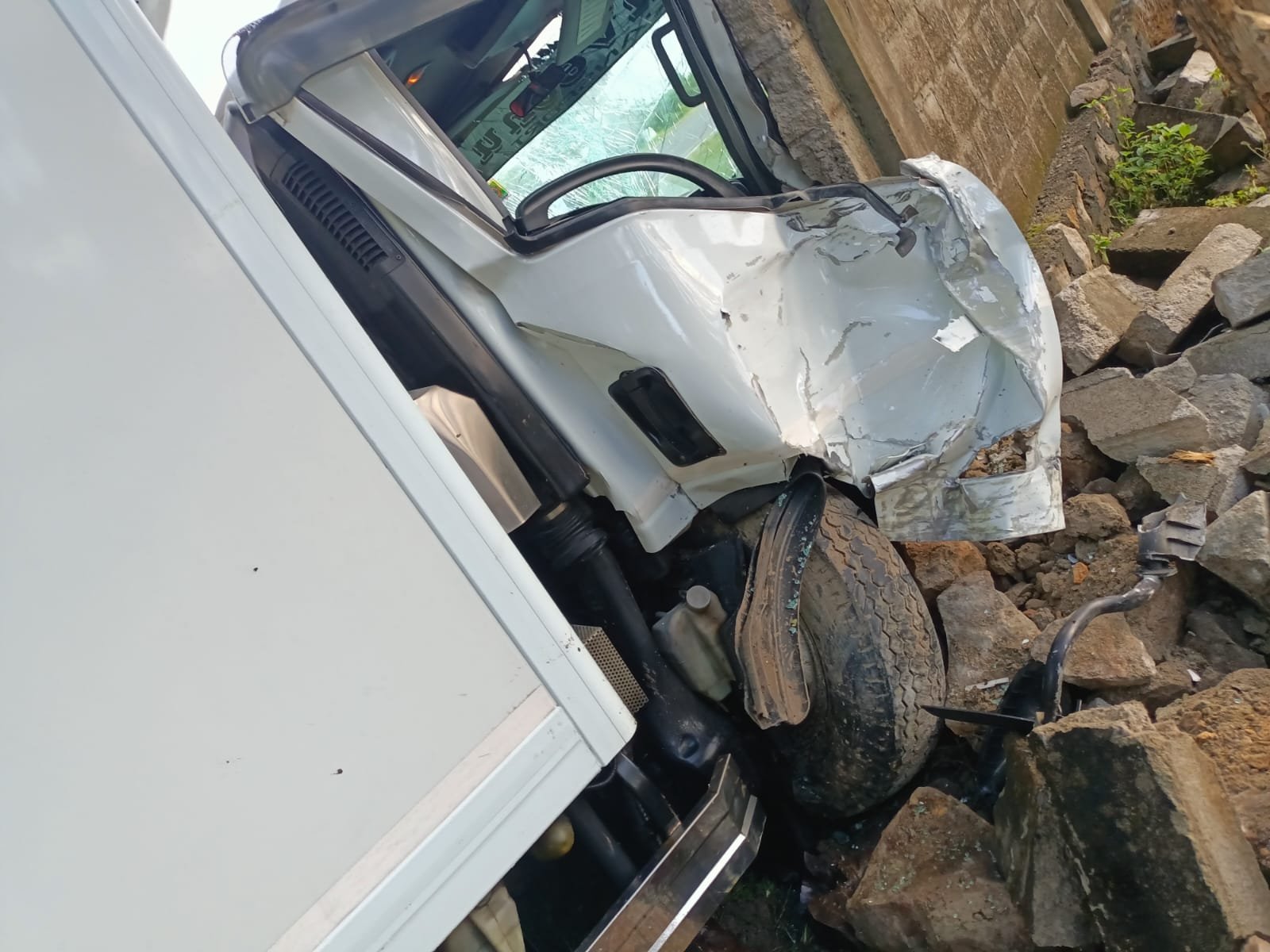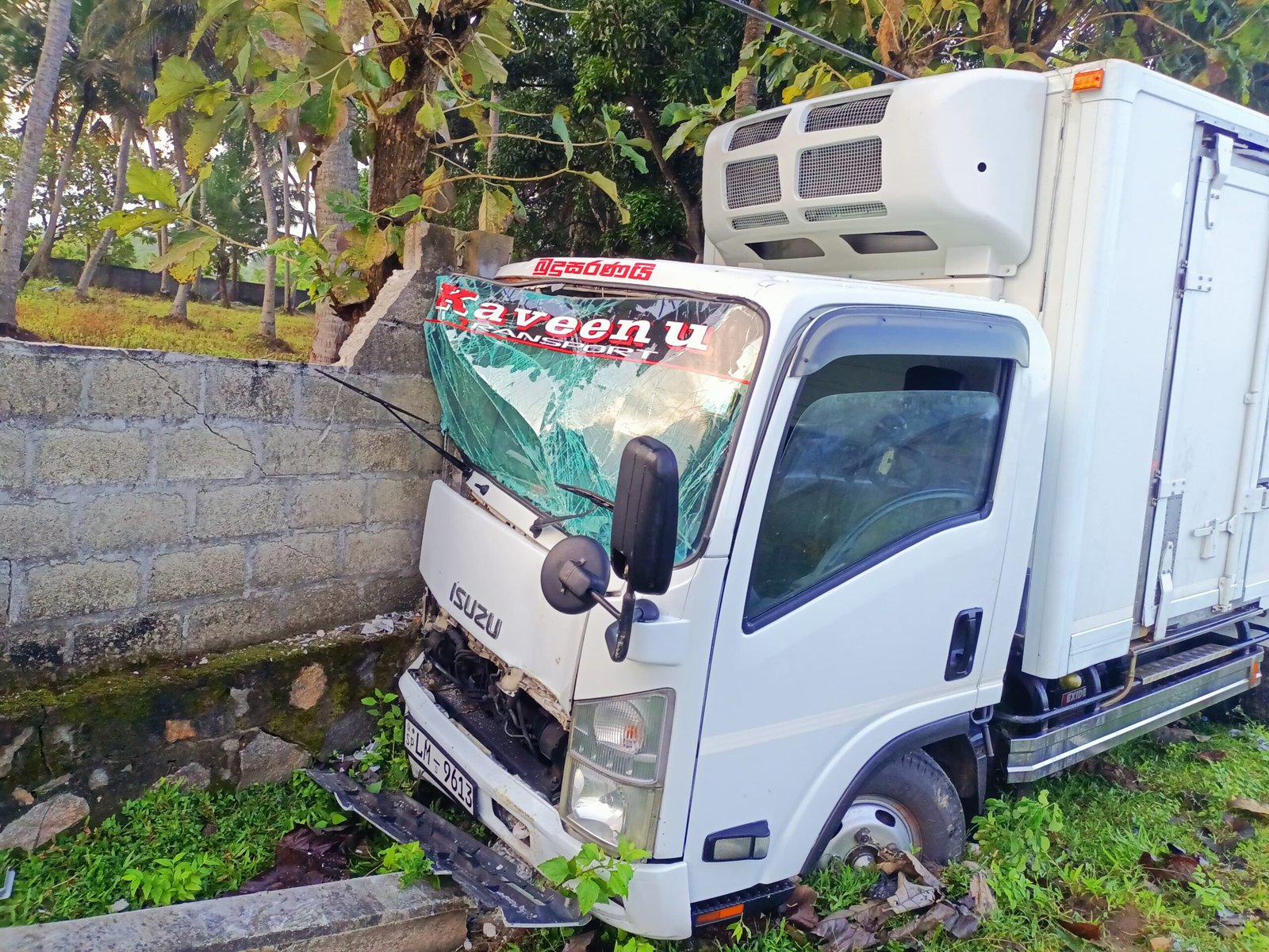 அம்பலாங்கொடை பகுதியில் இருந்து மீன்களை ஏற்றிக்கொண்டு மாளிகைக்காடு பகுதிக்கு பயணிக்கையில், சாரதியின் தூக்கம் காரணமாக வாகனம் வீதியை விட்டு விலகி, அருகில் உள்ள சுவரில் மோதி விபத்து இடம்பெற்றுள்ளது.