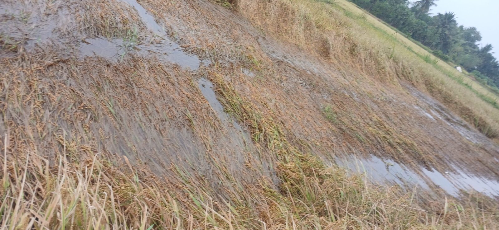 அறுவடை செய்யப்பட்ட நெல் மழையால் உரிய முறையில் உலர்த்த முடியாத நிலை உருவாகியுள்ளது. இதன் காரணமாக நெல் முலை விடத் தொடங்கியுள்ளதுடன், பெருமளவிலான விளைச்சல் பயன்பாடற்றதாக மாறும் அபாயம் ஏற்பட்டுள்ளது. மேலும் பல்வேறு வேளாண்மை நிலங்களும் வெள்ளத்தில் மூழ்கியுள்ளதாக அவர் சுட்டிக்காட்டினார்.