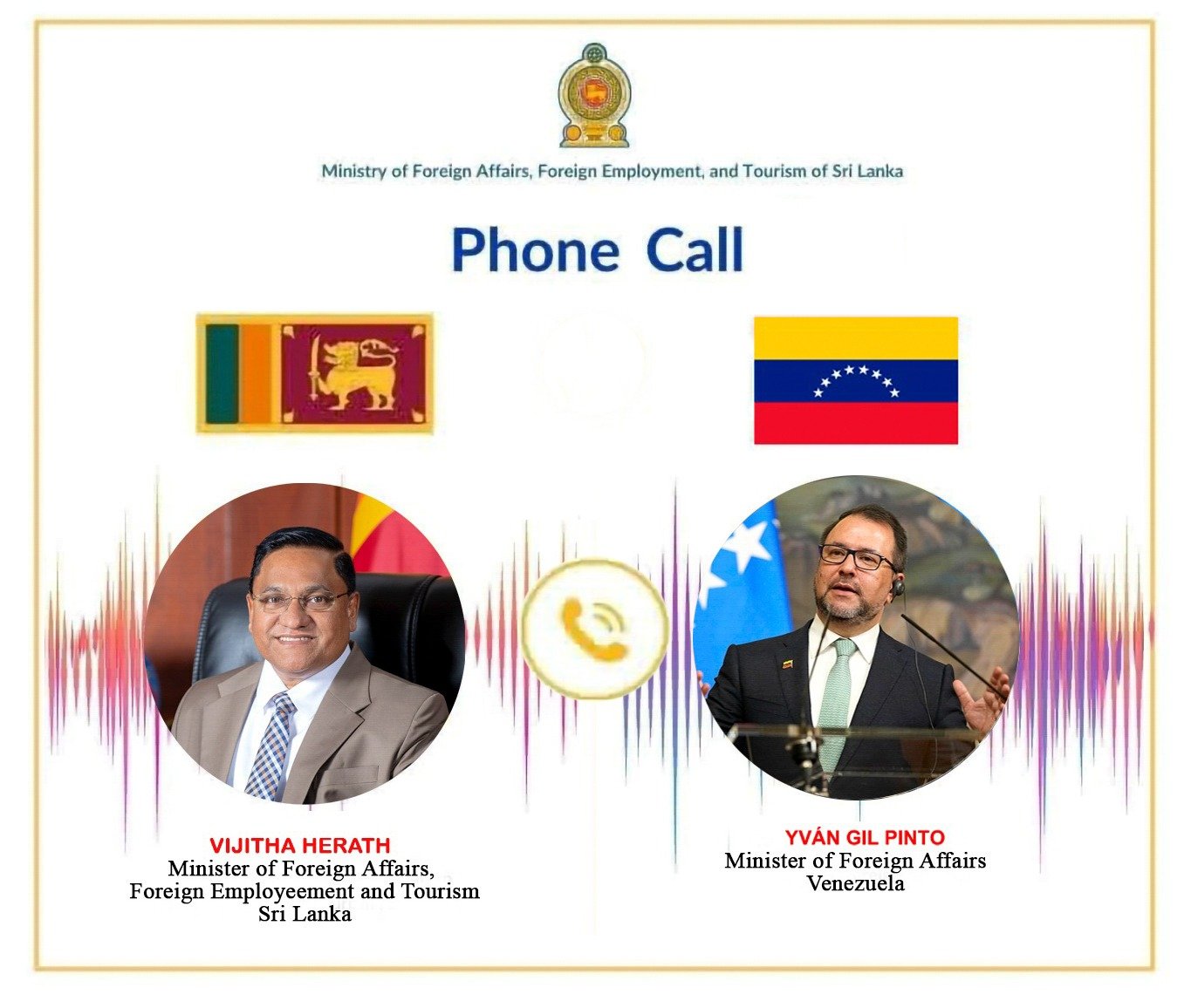 இலங்கையின் வெளிவிவகார, வெளிநாட்டு வேலைவாய்ப்பு மற்றும் சுற்றுலாத்துறை அமைச்சர் விஜித ஹேரத், வெனிசுலாவின் வெளிவிவகார அமைச்சர் இவான் கில் பின்டோவுடன் தொலைபேசி ஊடாக கலந்துரையாடலை நடத்தியுள்ளார்.