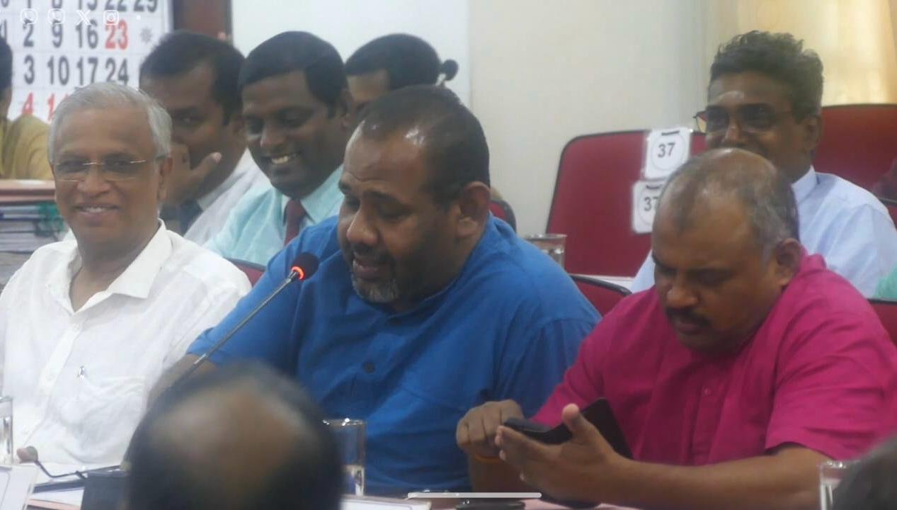 இதன் போது குறுக்கிட்ட பாராளுமன்ற உறுப்பினர் கயேந்திரகுமார் நீங்கள் துறைசார்ந்த அமைச்சராக இருக்கிறீர்கள் உங்களால் பிரச்சினை தீர்க்க முடியாது என்றால் எங்களை ஏன் அழைக்கிறார்கள் என்றார்.