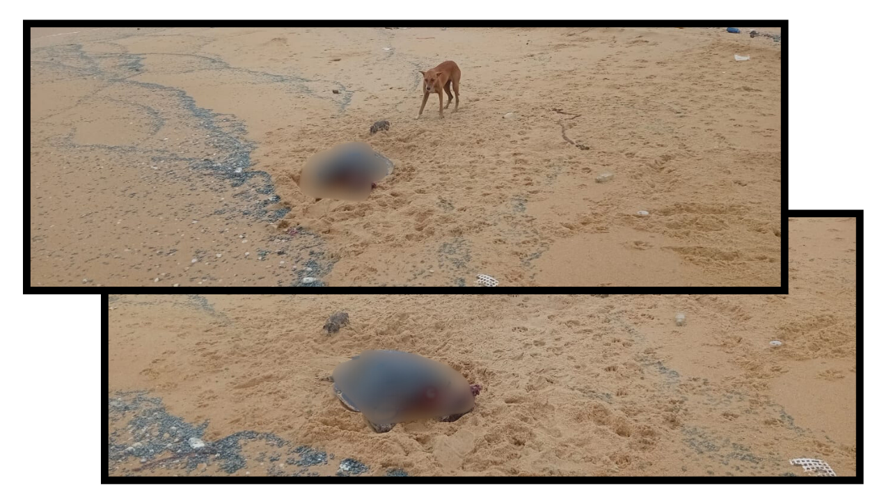 ஆமைகளை பிடிப்பதும், இறைச்சிக்காக பயன்படுத்துவதும் சட்டவிரோதம் என்பதால் கரையொதுங்கிய ஆமைகள் துர்நாற்றம் வீசக்கூடிய நிலையிலும் உருக்குலைந்து காணப்படுகின்றமை குறிப்பிடத்தக்கது.