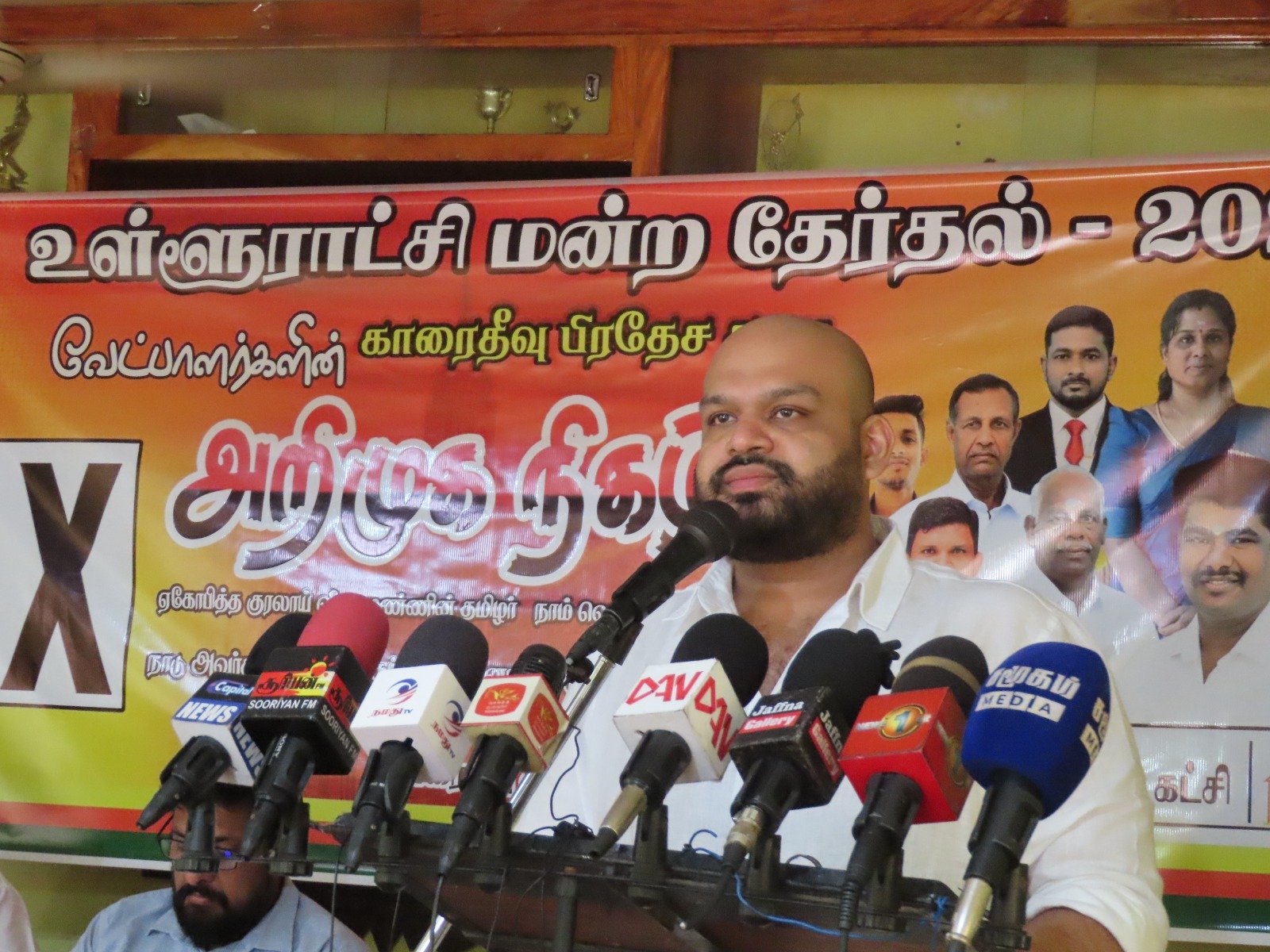 தொடர்ச்சியாக இலங்கை தமிழரசுக் கட்சி காரைதீவு பிரதேச சபையை கைப்பற்றி வருகின்றது. இம்முறையும் இலங்கை தமிழரசுக் கட்சியே காரைதீவு பிரதேச சபையில் ஆட்சி அமைக்கும்.அதே போன்று அம்பாறை மாவட்டத்திலும் அதிகப்படியான உள்ளூராட்சி சபைகளை கைப்பற்றும். ஏன் என்றால் இங்கு உண்மையான உணர்வுள்ள தமிழர்கள் இருக்கின்றார்கள். அவர்கள் இனம் சார்ந்த நிலம் சார்ந்து சிந்திக்கின்றார்கள். எமது மக்களை எமது மக்கள்தான் ஆள வேண்டும்.சிலர் இன்னும் பெரும்பான்மை கட்சிகளோடு இணைந்து எம் மக்களை ஏமாற்றி வருகிறார்கள் எனத் தெரிவித்தார்.