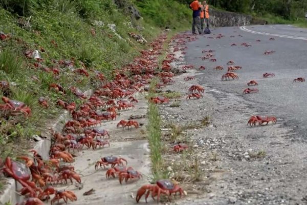 அவுஸ்திரேலியாவின் கிறிஸ்மஸ் தீவு தேசியப் பூங்காவில் (Christmas Island National Park) வசிக்கும் இலட்சக்கணக்கான சிவப்பு நண்டுகள் (Red Crabs), தங்களின் வருடாந்திர இனப்பெருக்கப் பயணத்தின் காரணமாகச் வீதிகளை ஆக்கிரமித்துள்ளதால், அப்பகுதியில் போக்குவரத்து தடை செய்யப்பட்டுள்ளது.