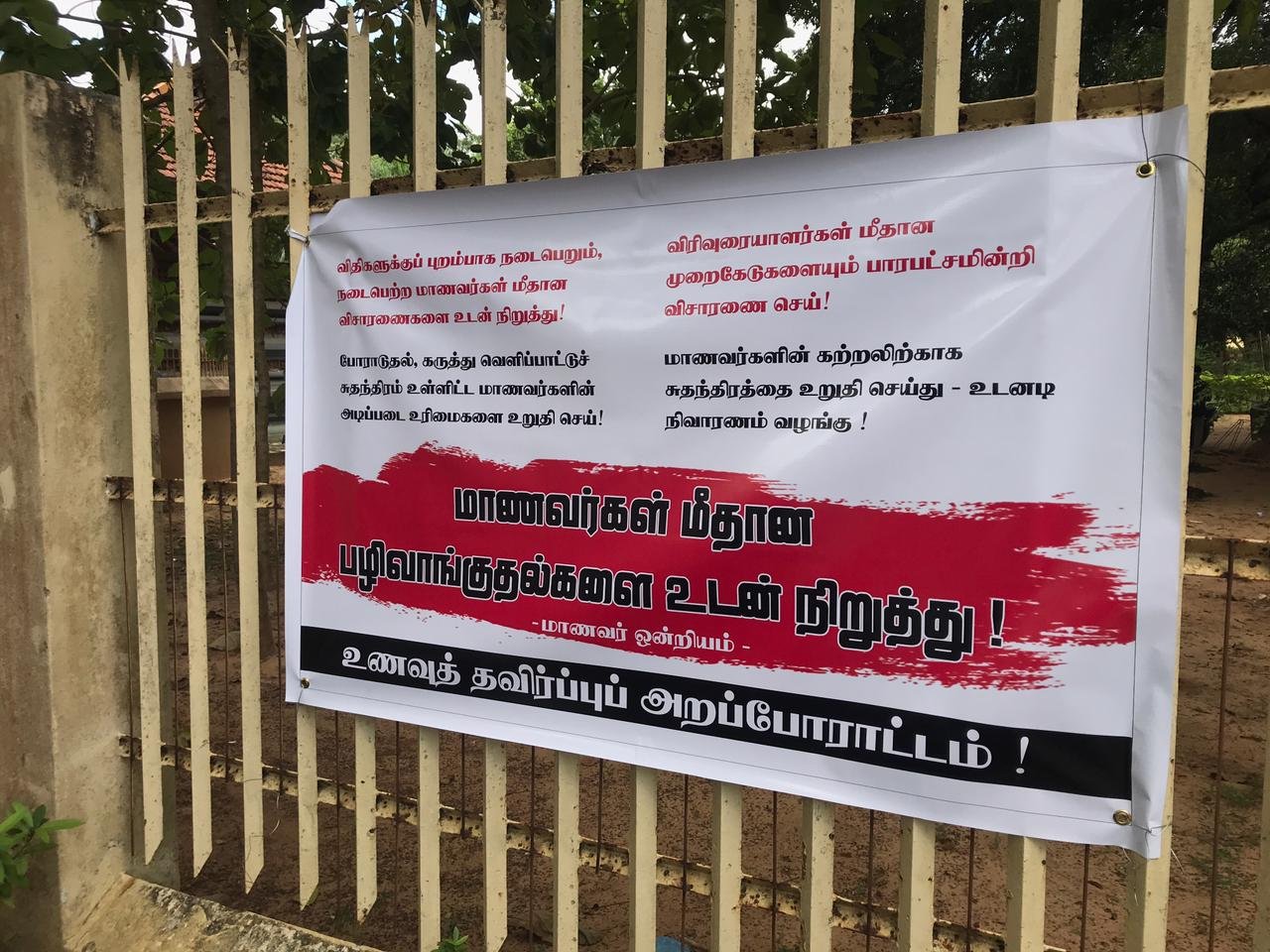 மாணவர்கள் மீதான பழிவாங்குதல்களை உடன்நிறுத்த வலியுறுத்த யாழ்ப்பாணப் பல்கலைக்கழக மாணவர்கள் இரண்டு நாட்களாக மேற்கொண்ட உண்ணாவிரதப் போராட்டத்தின் விளைவாகவும் மாணவர்களின் மீதுள்ள நியாயங்களின் விளைவாகவும் குற்றச்சாட்டுக்களிலிருந்து மாணவர்கள் அனைவரும் இன்று சனிக்கிழமை நடைபெற்ற பல்கலைக்கழக பேரவைக் கூட்டத்தில் தீர்மானிக்கப்பட்டு விடுவிக்கப்பட்டுள்ளனர்.