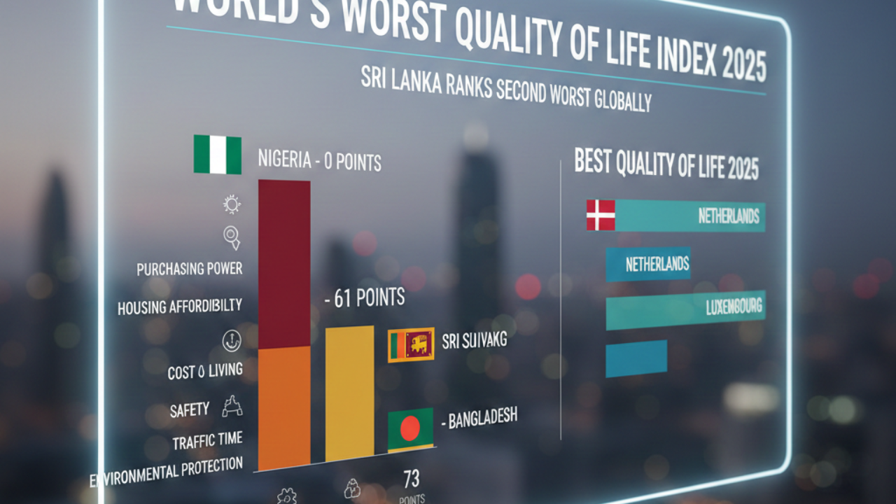 உலகின் மிகவும் மோசமான வாழ்க்கைத் தரத்தைக் கொண்ட நாடுகளின் வரிசையில் நைஜீரியா முதலிடத்தையும் இலங்கை இரண்டாம் இடத்தையும் பங்களாதேஷ் மூன்றாம் இடத்தையும் பெற்றுக் கொண்டுள்ளன.