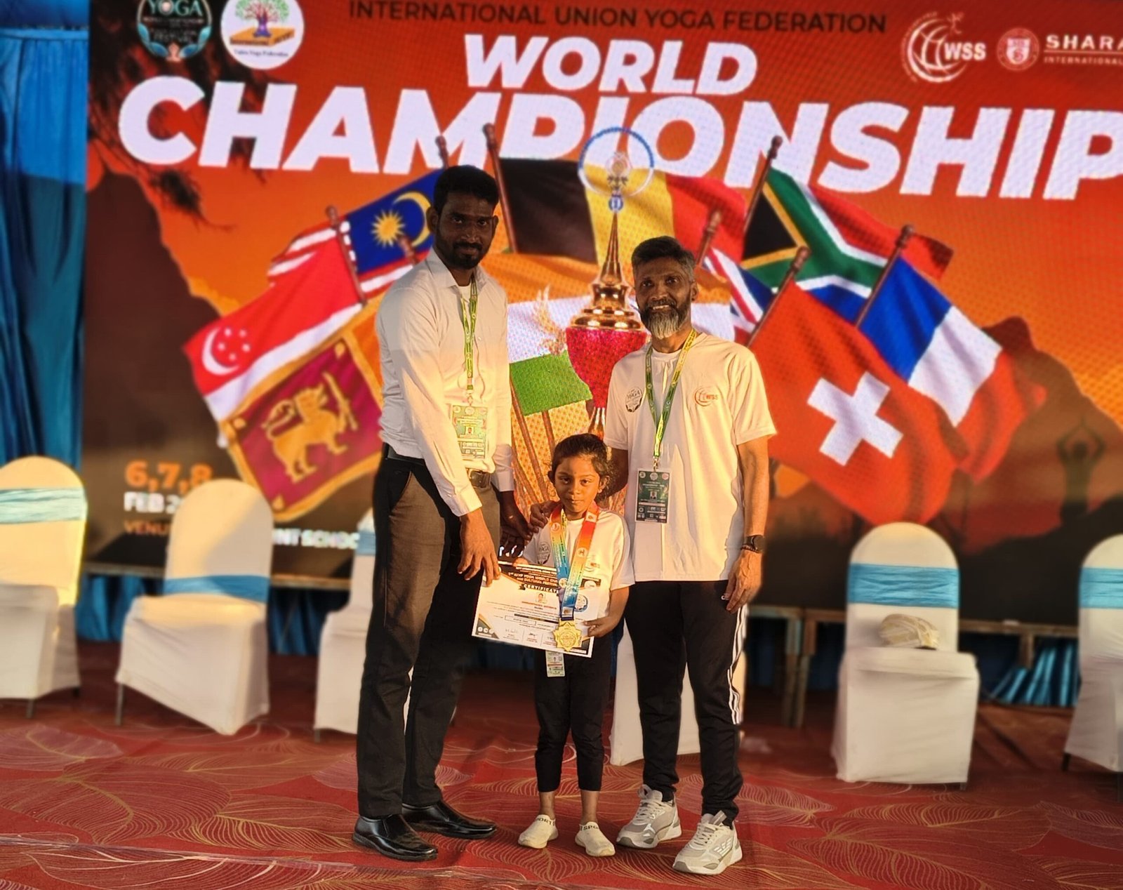 இந்தியாவின் பெங்களூரில் நடைபெற்ற சர்வதேச யோகா கூட்டமைப்பின் (International Union Yoga Federation) உலக யோகா சாம்பியன்ஷிப் போட்டியில், இலங்கை அணி மிகச்சிறந்த திறமையை வெளிப்படுத்தி ஒட்டுமொத்தப் போட்டியில் இரண்டாம் இடத்தை (Runner-up) வென்றுள்ளது.