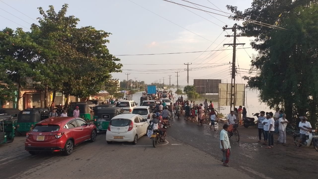 அதனையொட்டியதாக அம்பாறை – காரைதீவு – மாவடிப்பள்ளி வீதி வெள்ளத்தில் மூழ்கி போக்குவரத்து அபாயகரமானதாக மாறியுள்ளது. இந்த பாதைகளினூடாக மோட்டார் சைக்கிள், ஆட்டோ, கார் என்பன செல்ல முடியாத நிலை உருவாகியுள்ளது.