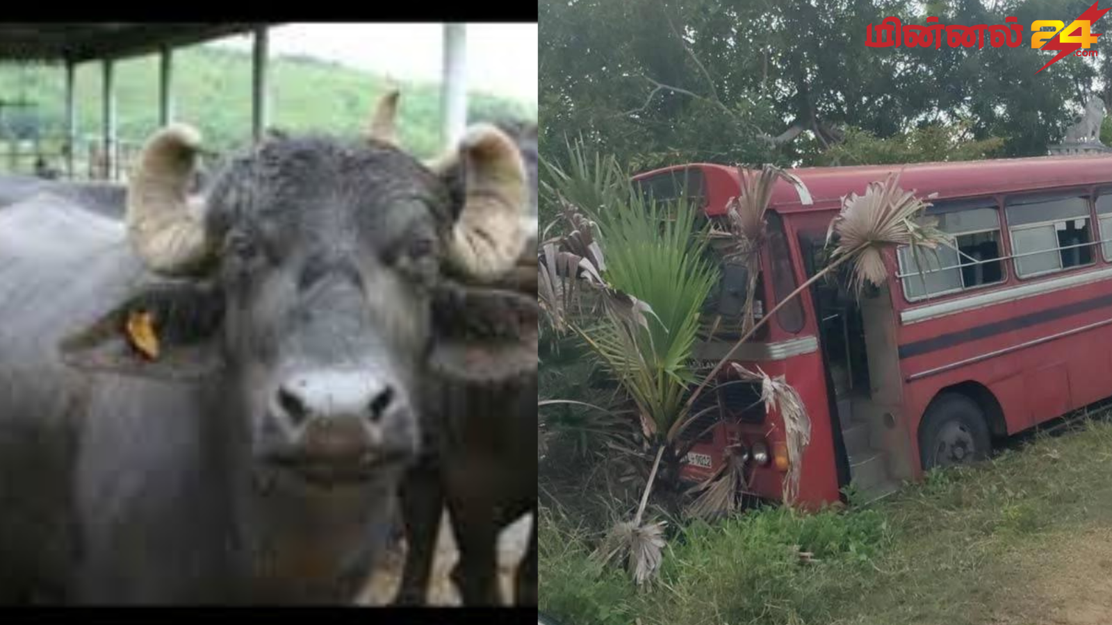 எருமை மாடுகளுடன் மோதிய பேருந்து