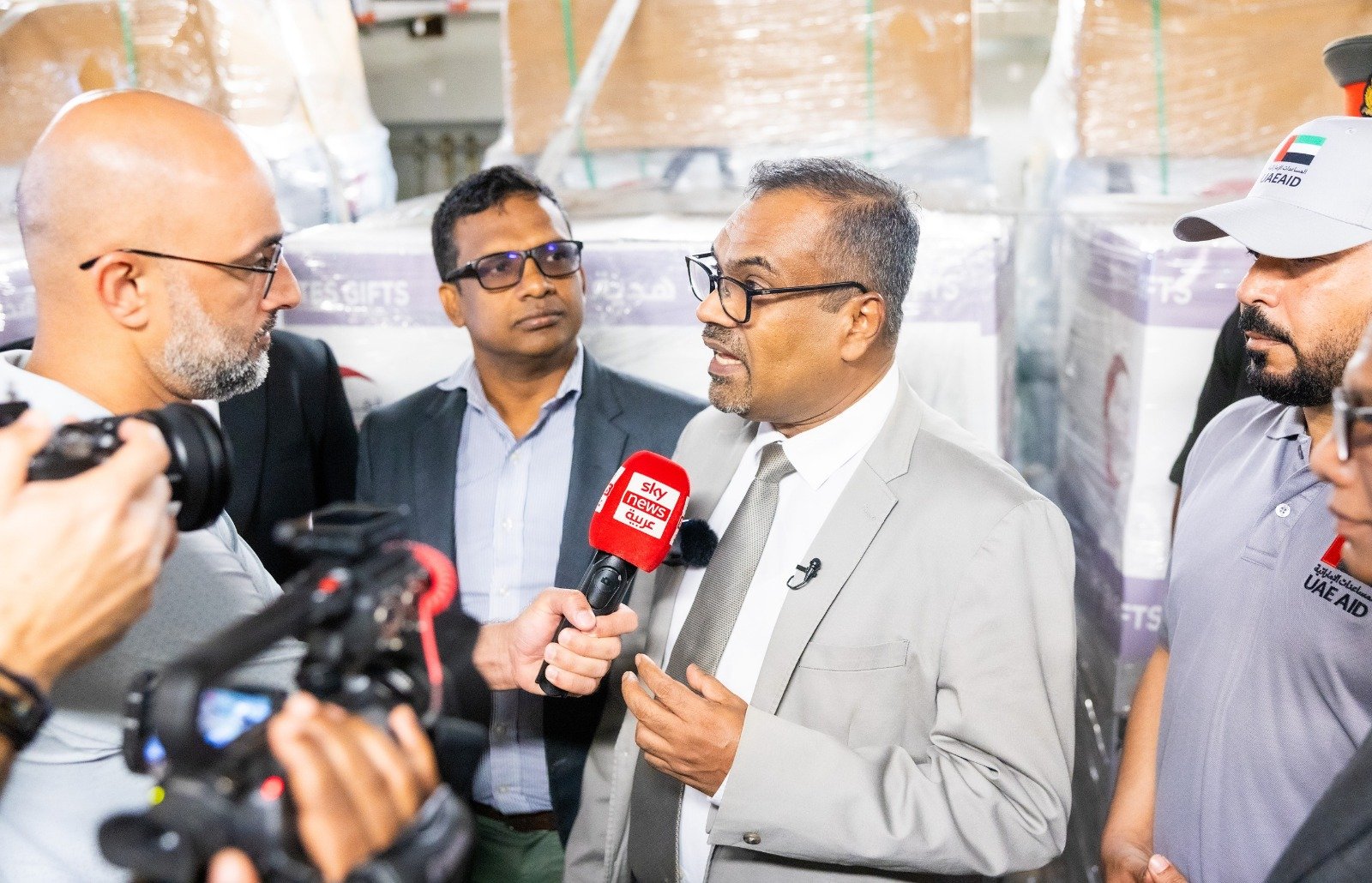 இந்த உதவியை ஐக்கிய அரபு இராஜ்ஜிய நிவாரணக் குழுவின் தலைவர் கலாநிதி ஹமூத் அல் அபாரி உத்தியோகபூர்வமாக கையளித்தார். இலங்கையின் சார்பாக தொழில் அமைச்சரும் நிதி மற்றும் திட்டமிடல் பிரதி அமைச்சருமான கலாநிதி அனில் ஜயந்த பெர்னாண்டோ, துறைமுகங்கள் மற்றும் சிவில் விமானப் போக்குவரத்து அமைச்சர் அநுர கருணாதிலக்க மற்றும் துறைமுகங்கள் மற்றும் சிவில் விமானப் போக்குவரத்து பிரதி அமைச்சர் ஜனித ருவன் கொடிதுவக்கு ஆகியோர் உதவிப் பொருட்களை பொறுப்பேற்றனர்.