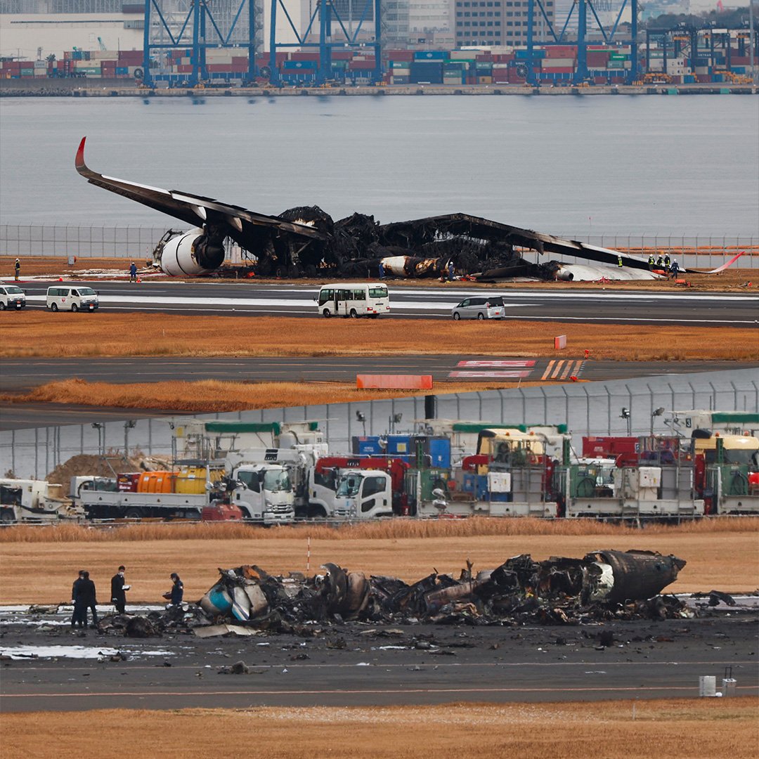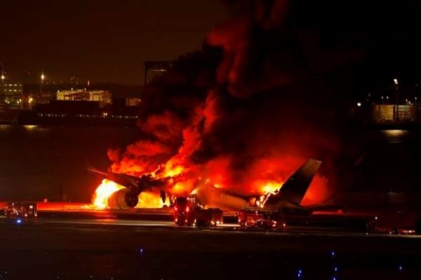 டோக்கியோவின் ஹனேடா விமான நிலையத்தில் ஜப்பான் ஏயார்லைன்ஸ் பயணிகள் விமானம் தரையிறங்கி ஓடுபாதையை தொட்ட வேளையில் கடலோர காவல்படையால் இயக்கப்படும் மற்றொரு விமானமான DHC 8-300 பதிவிலகம் 8-300 விமானத்துடன் மோதியது.