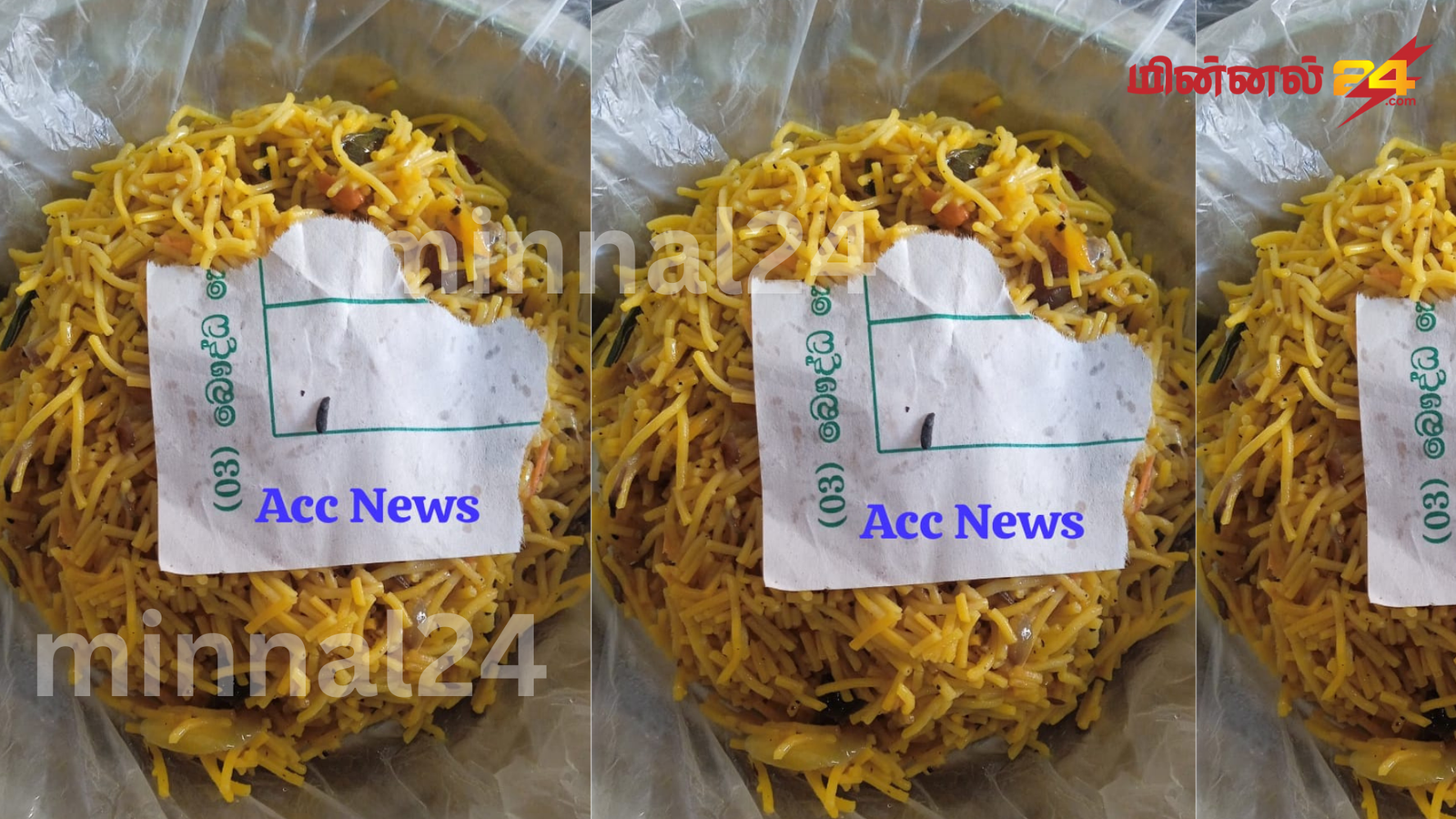 கல்முனை பகுதியில் அமைந்துள்ள உணவகத்தில் காலை உணவிற்காக கொள்வனவு செய்யப்பட்ட நூட்லிஸ் உணவு பொதியில் எலி மலம் இருந்துள்ளது.