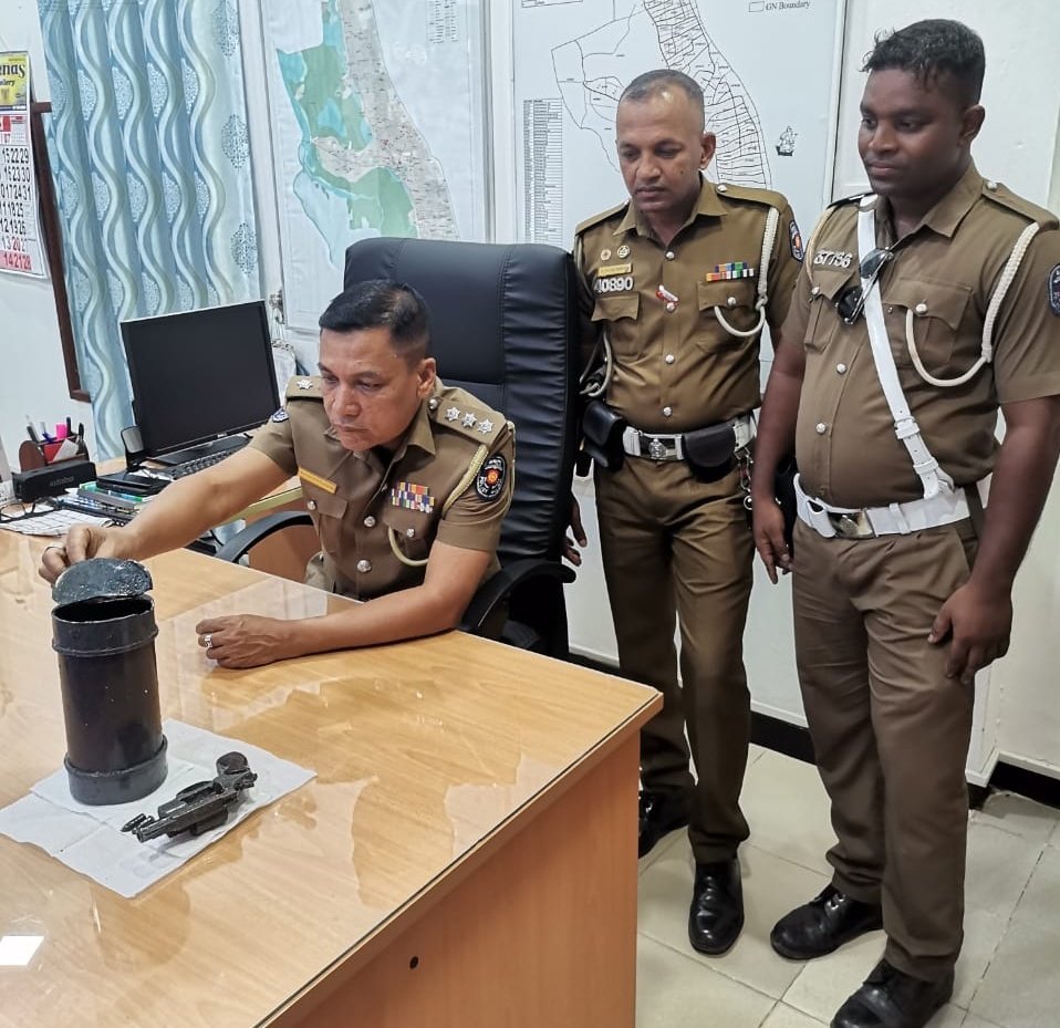 2 தோட்டாக்களுடன் (ரிவோல்வர்) இயங்குநிலையில் காணப்படும் குறித்த துப்பாக்கி, ஜேர்மனி நாட்டு தயாரிப்பு, என பொலிஸார் குறிப்பிட்டனர்.