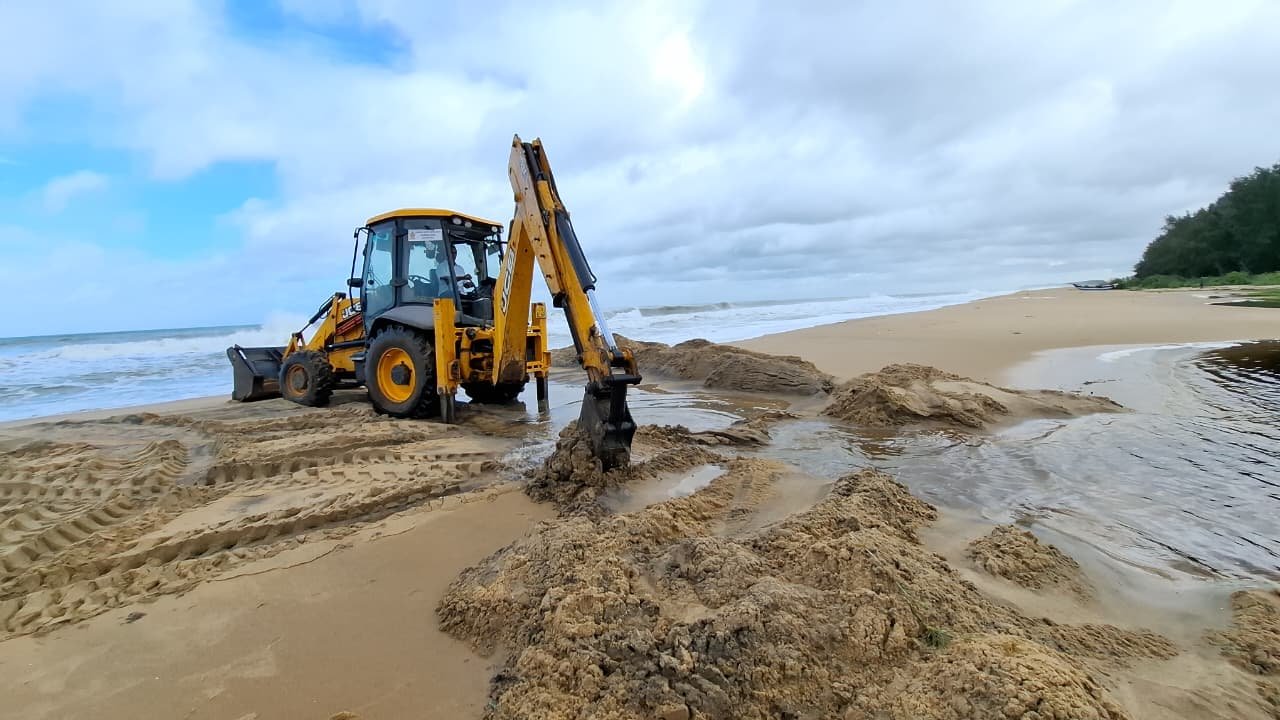 மண்முனை தென் எருவில் பற்று பிரதேச சபையின் JCB இயந்திரம் மூலம் முகத்துவாரம் வெட்டப்பட்டு, நீர் வடிந்தோடச்செய்யப்பட்டது.