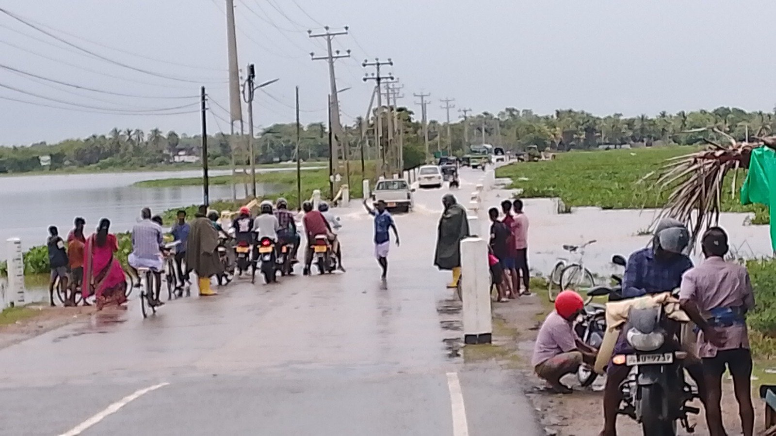 கிட்டங்கி வீதி அடை மழை காரணமாக ஏற்பட்ட வெள்ள நீர் பரவல் காரணமாக அப்பகுதியால் பயணம் செய்பவர்கள் பாதுகாப்பு அறிவுறுத்தல் பின்பற்றி செல்வதை அவதானிக்க முடிகின்றது.