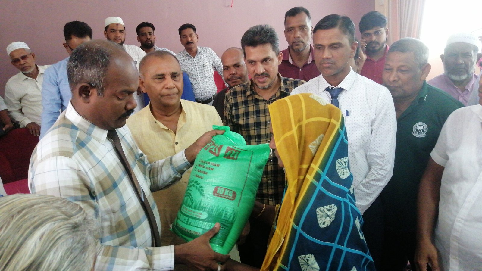 கிண்ணியா பிரதேச செயலாளர் எம். எச். ஹனி தலைமையில் இடம் பெற்ற குறித்த நிகழ்வில் திகாமடுல்ல மாவட்ட பாராளுமன்ற உறுப்பினர் ஏ.எல். எம் அதாவுல்லா கலந்து கொண்டு அரிசி பொதிகளை வழங்கி வைத்தார். 10 கிலோ கிராம் எடை கொண்ட அரிசி பொதி யானது ஒவ்வொரு குடும்பங்களும் வழங்கி வைக்கப்பட்டது. இதில் 220 குடும்பங்களுக்கு வழங்கி வைக்கப்பட்டன.