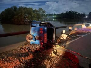 சீரற்ற கால நிலை காரணமாக குறித்த முனைச்சேனை எரிபொருள் நிரப்பு நிலையத்தின் அண்மையில் உள்ள கிண்ணியா கொழும்பு பிரதான வீதியின் பாதை உடைந்து சேதமாக்கப்பட்டு வெள்ள நீரால் பாரிய படுகுழி ஏற்பட்டிருந்தது இதனை பாதுகாப்பற்ற எச்சரிக்கை விடுத்த நிலையில் இருளில் மூழ்கியவாறு மூடப்பட்டு வீதி அபிவிருத்தி அதிகார சபையால் பாதுகாப்பு கருதி ஒரு பகுதி மூடப்பட்டிருந்தது. குறித்த இடத்தில் மோதிய முச்சக்கர வண்டியே விபத்துக்கு உள்ளானது. இவ் விபத்து தொடர்பில் மேலதிக விசாரனைகளை கிண்ணியா பொலிஸார் முன்னெடுத்துள்ளனர்.