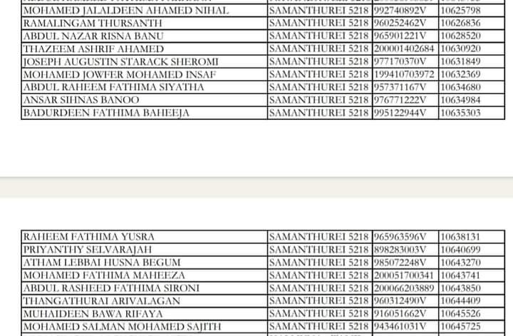 2023/12/02 அன்று நடைபெற்ற கிராம அலுவலர் III ஆம் தரத்திற்கு இணைத்துக் கொள்வதற்கான போட்டிப் பரீட்சை 2020 (2023) ன் படி நேர்முகப் பரீட்சைக்காக சம்மாந்துறையில் இருந்து 17 பேர் தெரிவு செய்யப்பட்டுள்ளனர்.