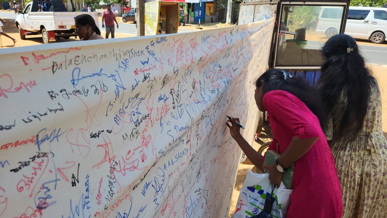 கிளிநொச்சியில் சம உரிமைகளை உறுதி செய்யும் கோரிக்கையை வலியுறுத்தி கையெழுத்து சேகரிக்கும் பணி