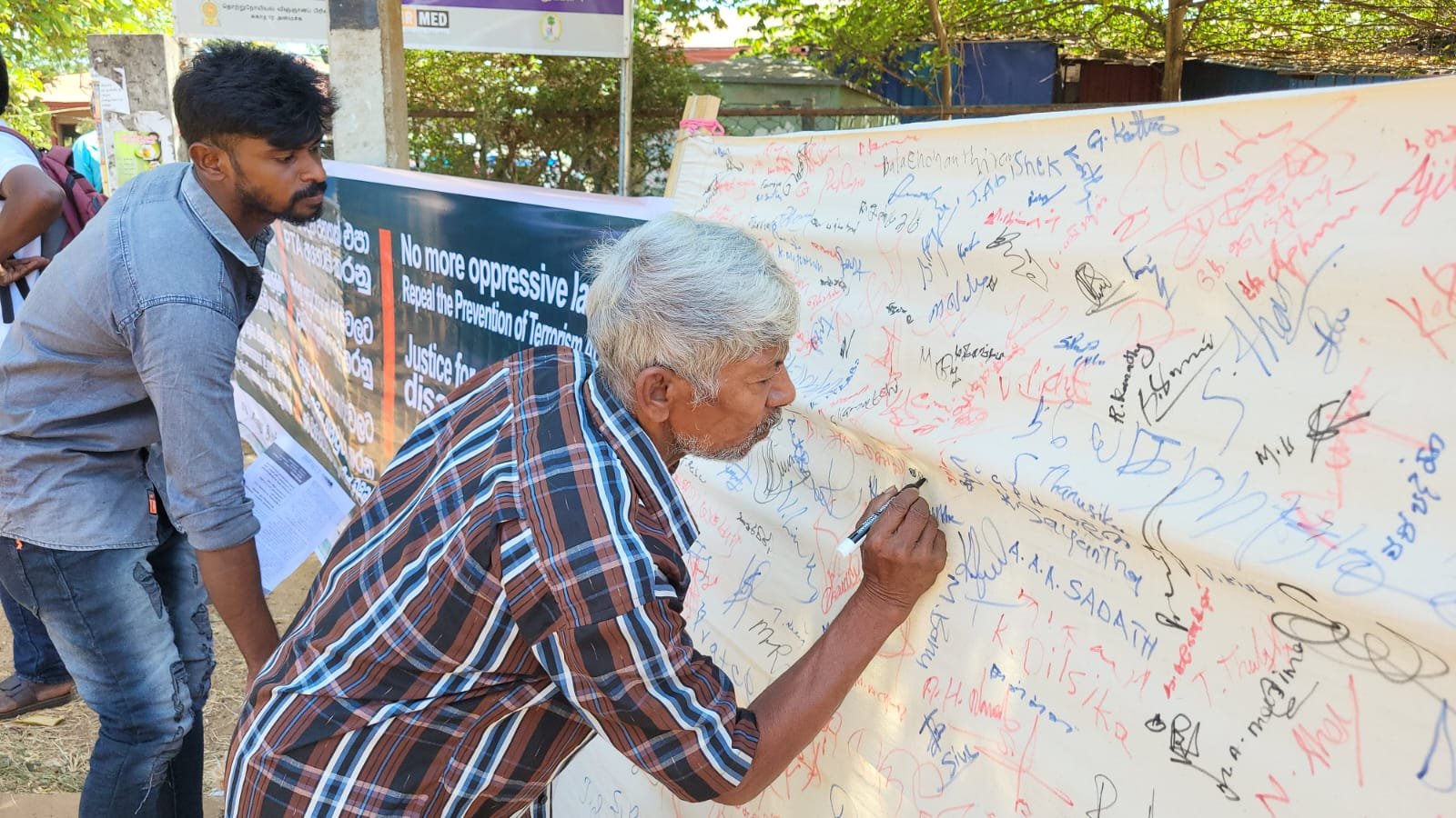 நேற்று செவ்வாய்க்கிழமை ஆரம்பிக்கப்பட்ட இந்நிகழ்வில், அனைத்து காணாமலாக்கல்களுக்கும் இப்போதாவது நீதி வழங்கு, மேலும் அடக்குமுறைச் சட்டங்கள் வேண்டாம், PTA ஐ ரத்து செய், என்பவை வலியுறுத்தப்பட்டுள்ளது.