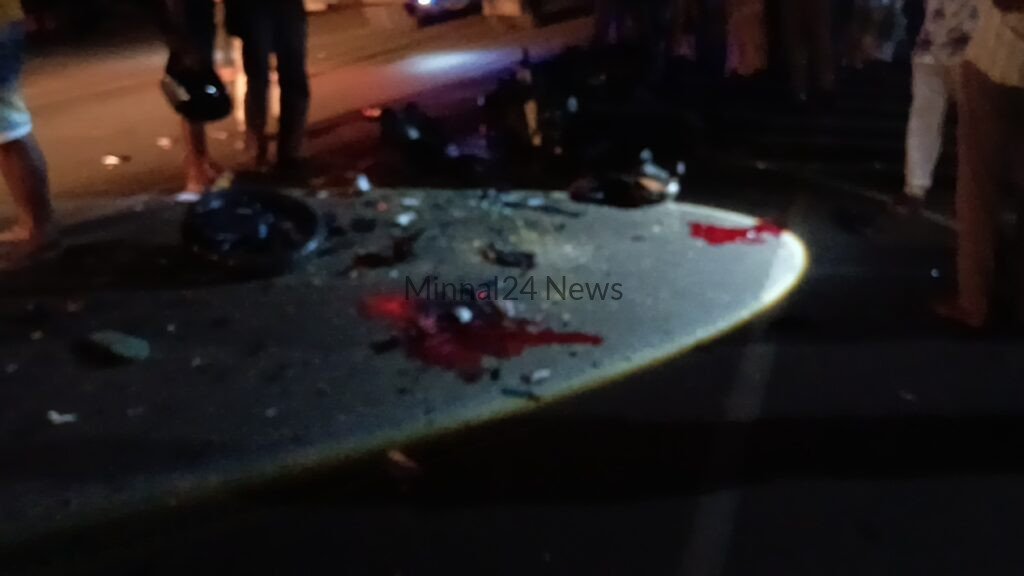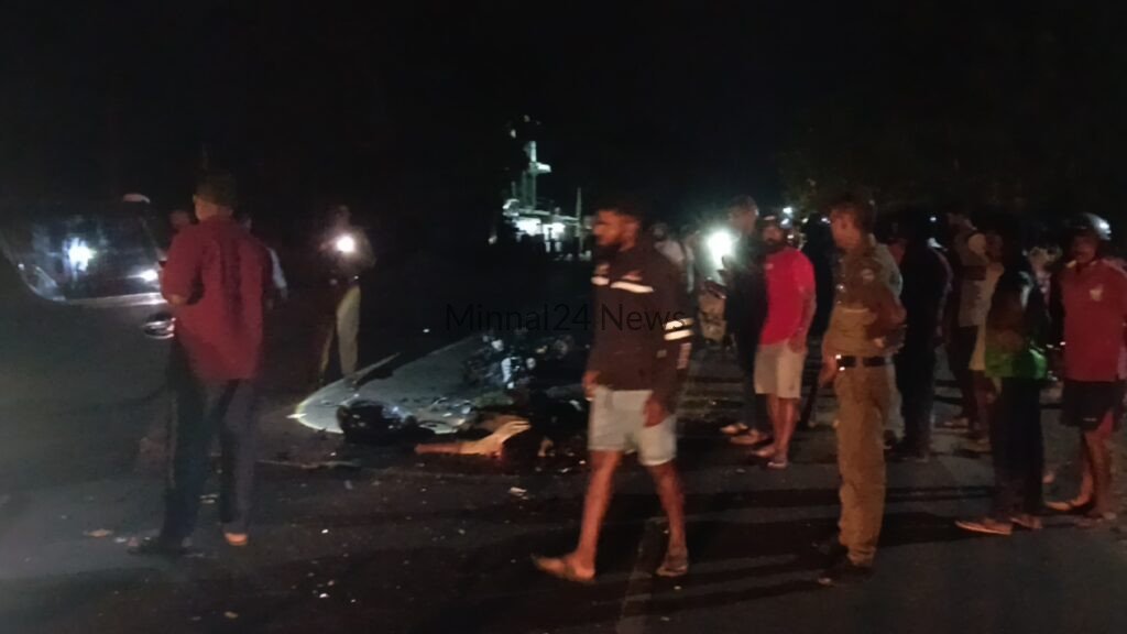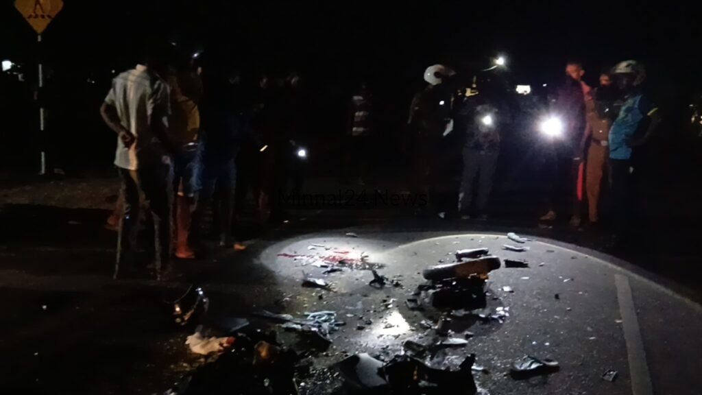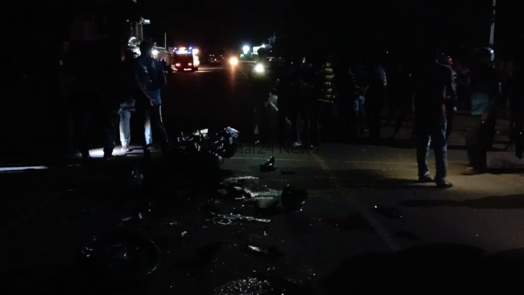 கிரேண்டர் வாகனத்தின் மோட்டார் சைக்கிள் மோதியதில் மோட்டார் சைக்கிளில் பயணித்த இரு இளைஞர்களும் , சம்பவ இடத்திலேயே உயிரிழந்துள்ளனர்.