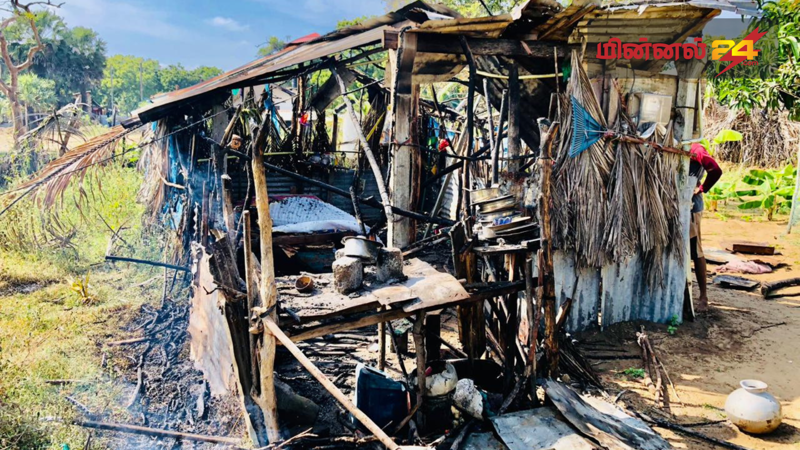 திருகோணமலை குச்சவெளி பிரதேச செயலகத்திற்கு உட்பட்ட புடவைக்கட்டு கிராமத்தில் தற்காலிக குடிசை வீடொன்று நேற்று புதன் கிழமை மாலை தீப்பற்றி எரிந்து சேதமடைந்துள்ளது.