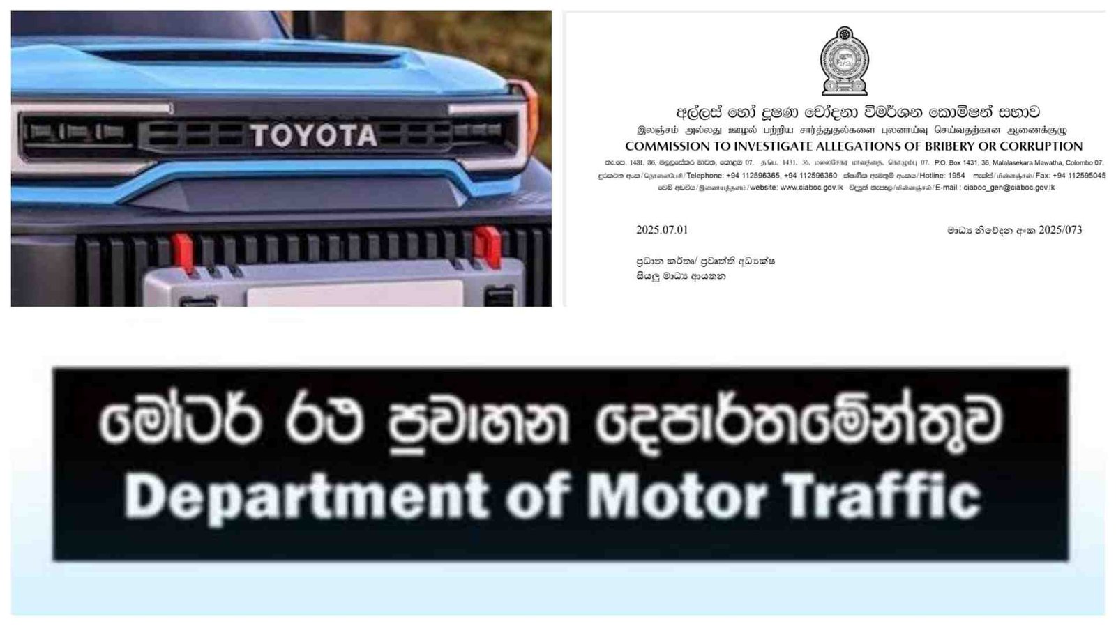 இலங்கை சுங்கத்தால் அனுமதிக்கப்படாத மோட்டார் வாகன போக்குவரத்து திணைக்களத்தில் சட்டவிரோதமாக பதிவு செய்யப்பட்ட டொயோட்டா வகை ஜீப் வாகனத்திற்கு இலக்க தகடு வழங்குவதற்கு அனுமதி அளித்ததன் மூலம், ஊழல் தடுப்பு சட்டத்தின் கீழ் குற்றம் இழைக்கப்பட்டதாக குற்றம்சாட்டி, ஊழல் தடுப்பு ஆணைக்குழுவால் இந்த சந்தேக நபர்கள் கைது செய்யப்பட்டிருந்தனர்.