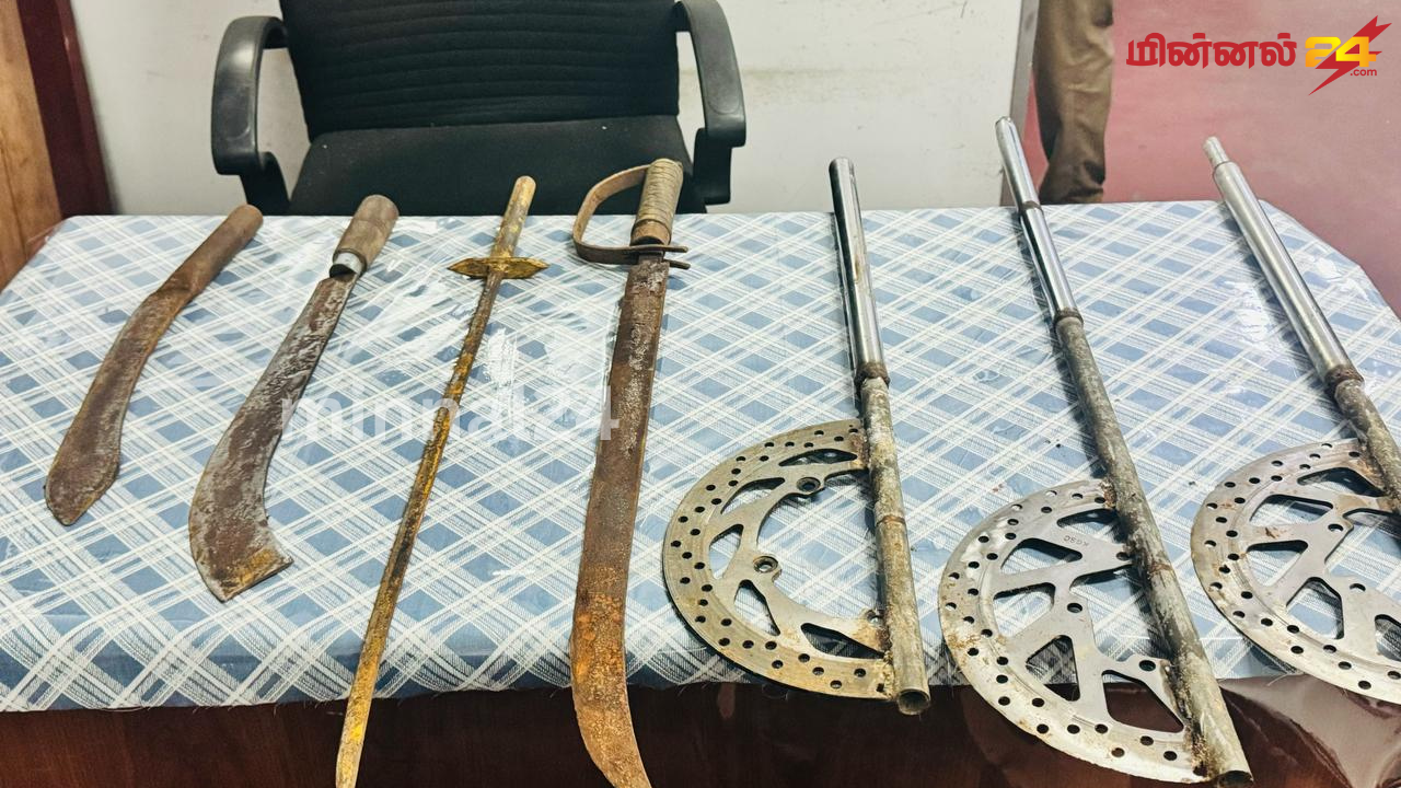 அவரிடம் மேற்கொள்ளப்பட்ட விசாரணையின் அடிப்படையில் இரண்டு வாள்களும், இரண்டு மோட்டார் சைக்கிள்களும் மீட்கப்பட்டன.
