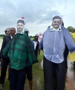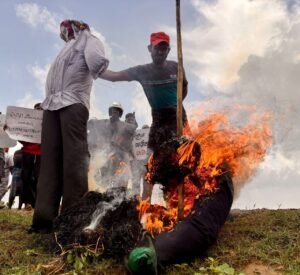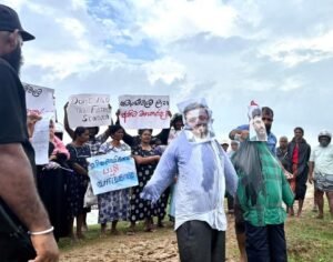 திருகோணமலை முத்துநகர் – தகரவட்டுவான் விவசாய நிலப் பகுதியில் விவசாயிகள் போராட்டத்தில் இன்று வியாழக்கிழமை கடும் மழையையும் பாராது கொடும்பாவி எரித்து போராட்டத்தில் ஈடுபட்டனர்.