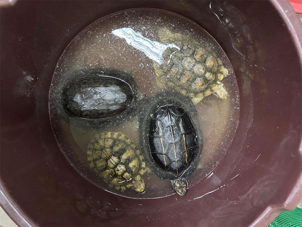சந்தேக நபரிடம் வணிக நோக்கங்களுக்காக நாட்டிற்கு கொண்டு வரப்பட்ட இரண்டு ஸ்னாப்பிங் ஆமைகள், இரண்டு சிவப்பு காதுகள் கொண்ட ஸ்லைடர்கள் மற்றும் இரண்டு இந்திய கருப்பு ஆமைகள் இருந்துள்ளன.