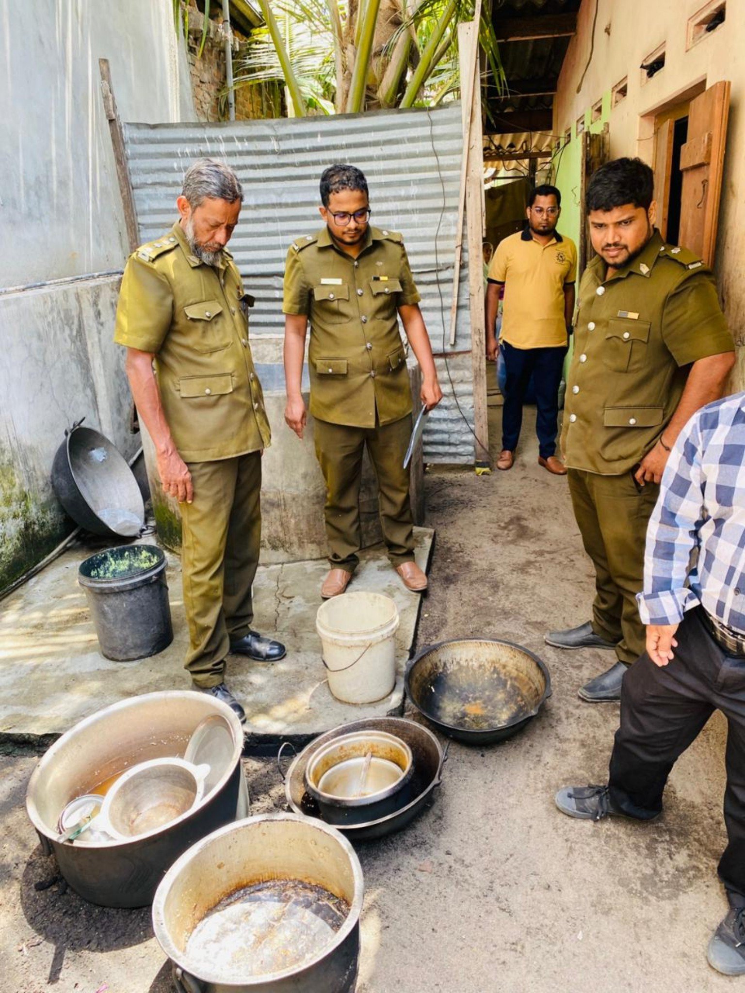 சுகாதார நெறிமுறைகள் பின்பற்றாமல் தயாரிக்கப்பட்ட உணவுகள், தரமற்ற மற்றும் மனித நலனுக்கு தீங்கு விளைவிக்கும் உணவுப் பொருட்கள், உணவு தயாரிப்பு மற்றும் சேமிப்பு பகுதிகளில் காணப்பட்ட சுகாதாரமின்மை இதன்போது கண்டறியப்பட்டது.
