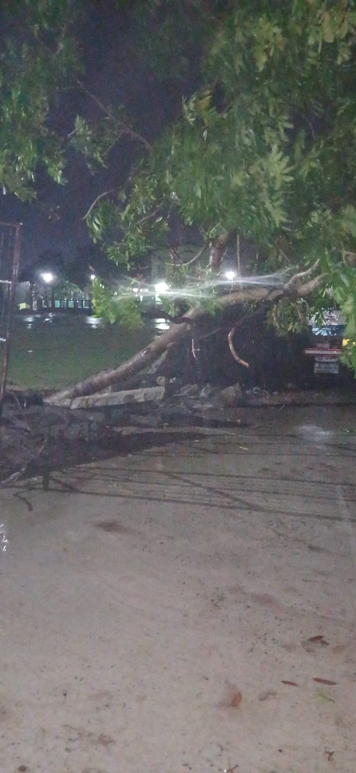 சாய்ந்தமருது எம்.எஸ்.காரியப்பர் வித்தியாலயத்தில் தற்போது வீசிவரும் காற்றின் வேகம் காரணமாக பாடசாலையில் மரமொன்று முறிந்து விழுந்து பாடசாலை பொது மதிலை உடைத்து பாரிய சேதம் ஏற்பட்டுள்ளது.
