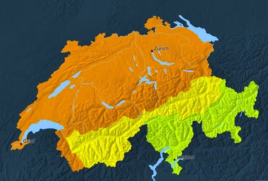 ஆல்ப்ஸ் மலை அடிவாரத்தில் இருந்து மத்திய பீடபூமி வரை நாட்டின் பெரும் பகுதிகள் பாதிக்கப்படும் என்றும் எச்சரிக்கப்பட்டுள்ளது.