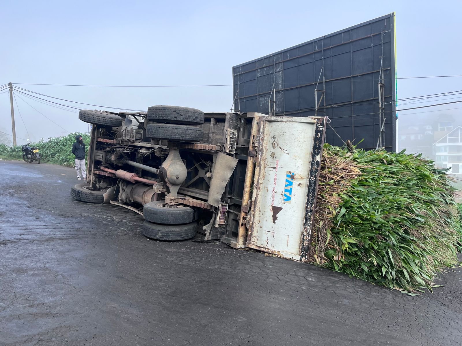 நுவரெலியா – பட்டிபொல பிரதான வீதியில் ரூவான்எலிய பகுதியில் குறித்த லொறி எதிர்பாராத விதமாக சாரதியின் கட்டுப்பாட்டை இழந்த பிரதான வீதியில் நடுவில் கவிழ்ந்து விபத்துக்குள்ளானது.