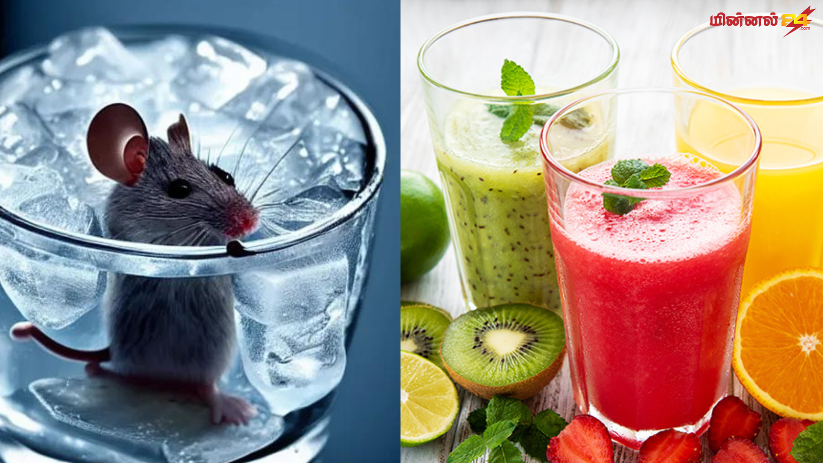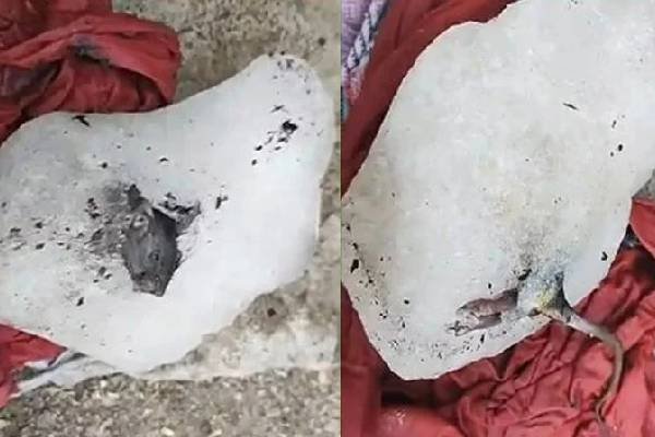 ஜூஸ் கடையில் ஐஸ் கட்டிக்குள் உறைந்து கிடந்த எலி