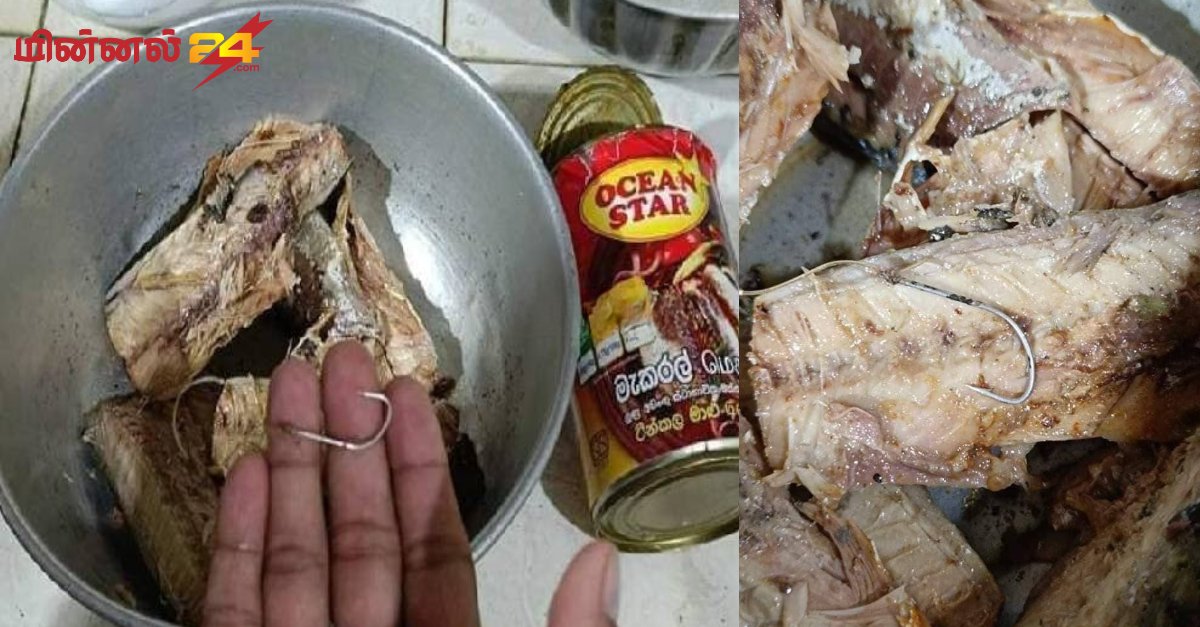 இலங்கையில் கடையொன்றில் டின் மீன் வாங்கிகொண்டு நபரொருவர் வீட்டிற்கு சென்று திறந்து பார்த்தபோது மீனில் தூண்டில் மாட்டி இருப்பதை அவதானித்துள்ளார்.