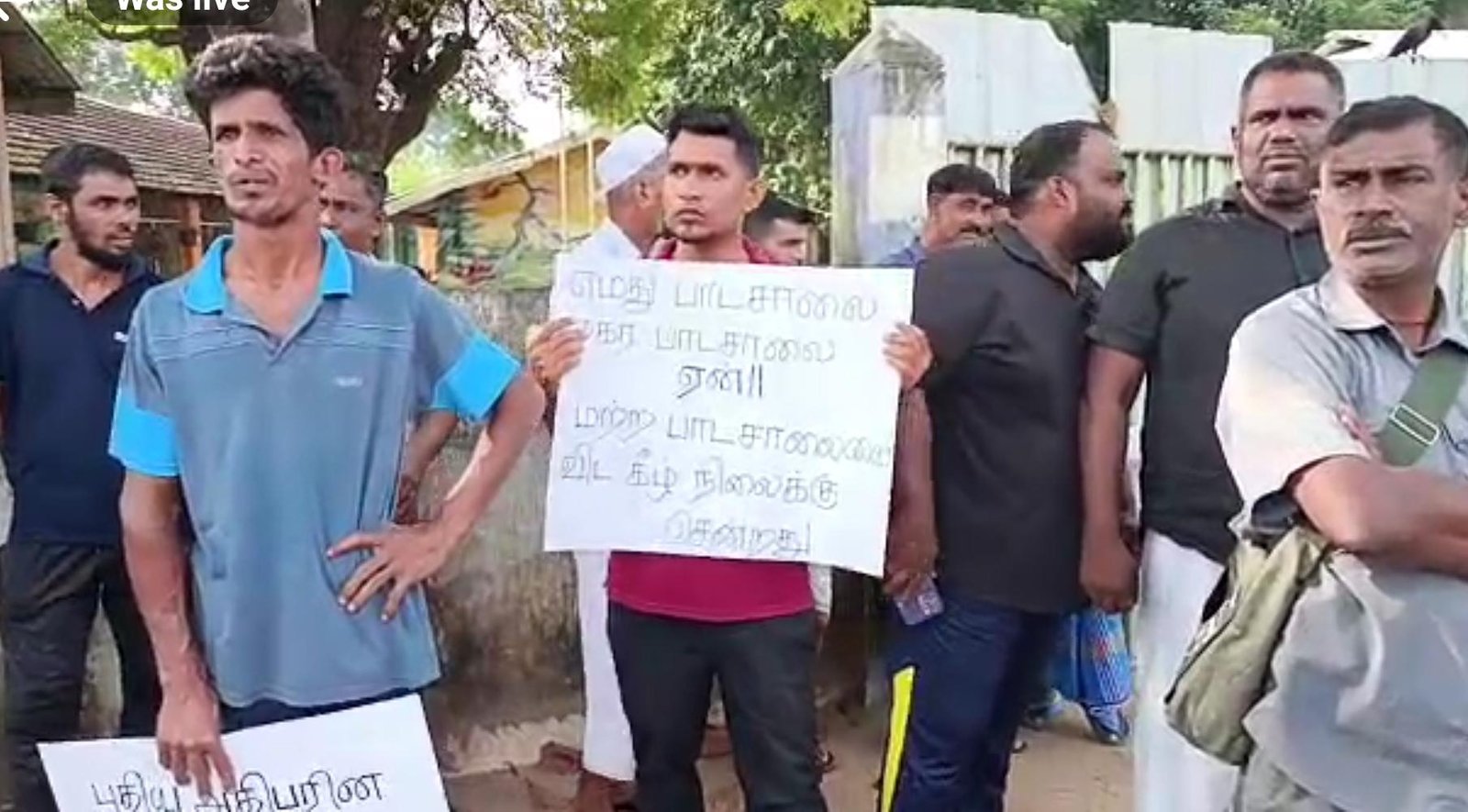 தகுதி வாய்ந்த அதிபரை தங்கள் பாடசாலைக்காக நியமித்து தருமாறு பெற்றோர் மற்றும் நலன் விரும்பிகள் பதாகைகள் ஏந்திய நிலையில் போராட்டத்தில் ஈடுபட்டனர்.