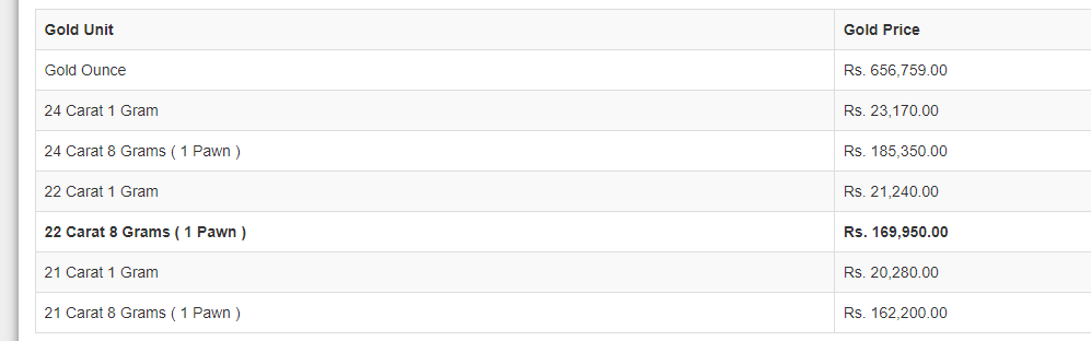 22 கரட் ஒரு பவுண் தங்கத்தின் விலை இன்று 169,950 ரூபாவாக பதிவாகியுள்ளது
