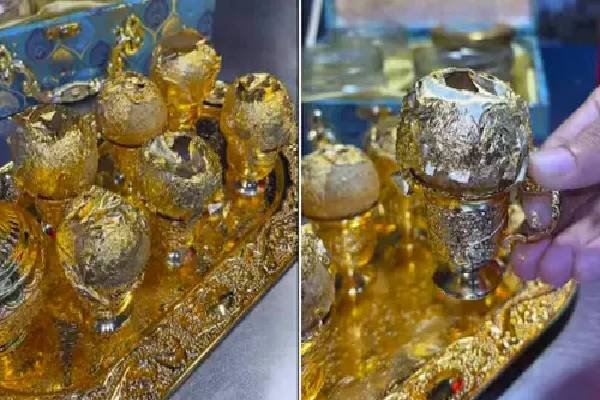இந்தியாவில் தங்கத் தட்டில் தங்கம் மற்றும் வெள்ளிப்படலத்துடன் பரிமாறப்படும் பானிபூரி தொடர்பில் வெளியான காணொளி ஒன்று வைரவாகியுள்ளது.