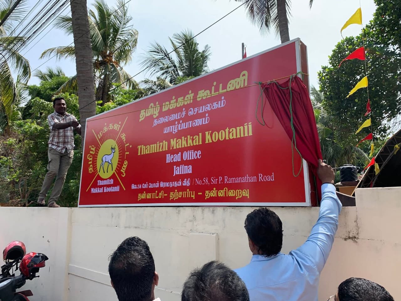 பின்னர் கட்சியின் மத்திய குழு உறுப்பினர் மணிவண்ணனால் கட்சியின் கொடி ஏற்றி வைக்கபட்டதை அடுத்து கட்சியின் தலைமைக் காரியாலயத்தின் பெயர்ப் பலகை திரைநீக்கமும் செய்துவைக்கப்பட்டது.