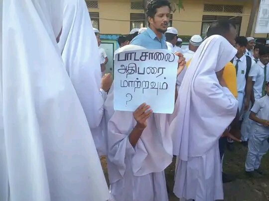 திருகோணமலை வெள்ளைமணல் அல்-அஷ்ஹர் முஸ்லிம் மகா வித்தியாலயத்தில், அதிபரை இடமாற்றுமாறு கோரி அப்பாட சாலையில் கல்வி கற்கும் மாணவர்களால், இன்று வெள்ளிக்கிழமை ஆர்ப்பாட்டமொன்று முன்னெடுக்கப்பட்டுள்ளது.