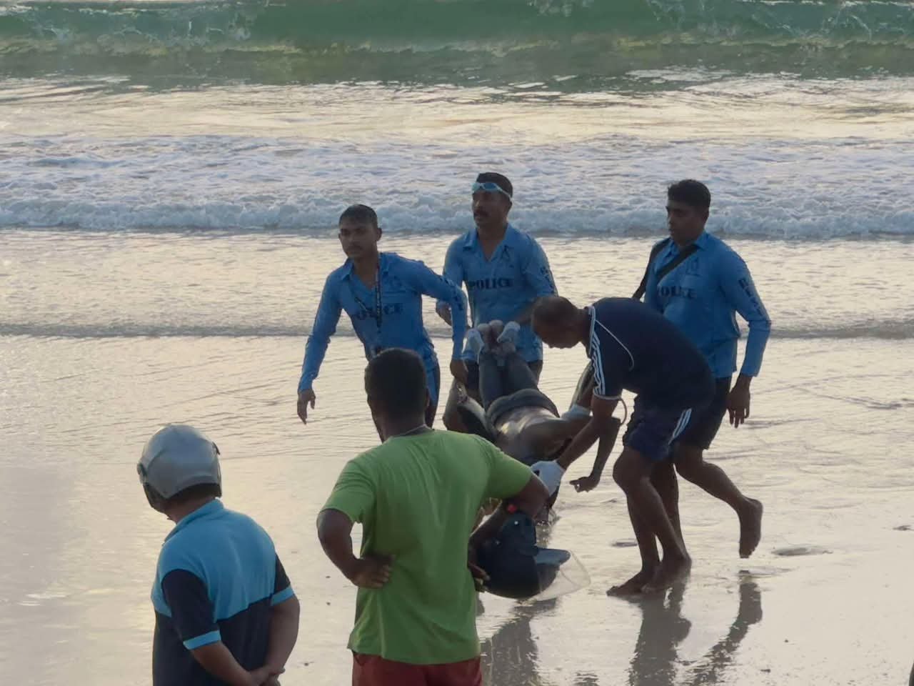 நான்கு நண்பர்கள் கடல் குளிப்பதற்காக சென்ற போது, இருவர் நீரில் அடித்துச் செல்லப்பட்ட நிலையில், ஒருவர் பொலிஸ் உயிர் காக்கும் படையினரால் மீட்கப்பட்டதுடன், மற்றவர் நீரில் அடித்துச் செல்லப்பட்டுள்ளார்.