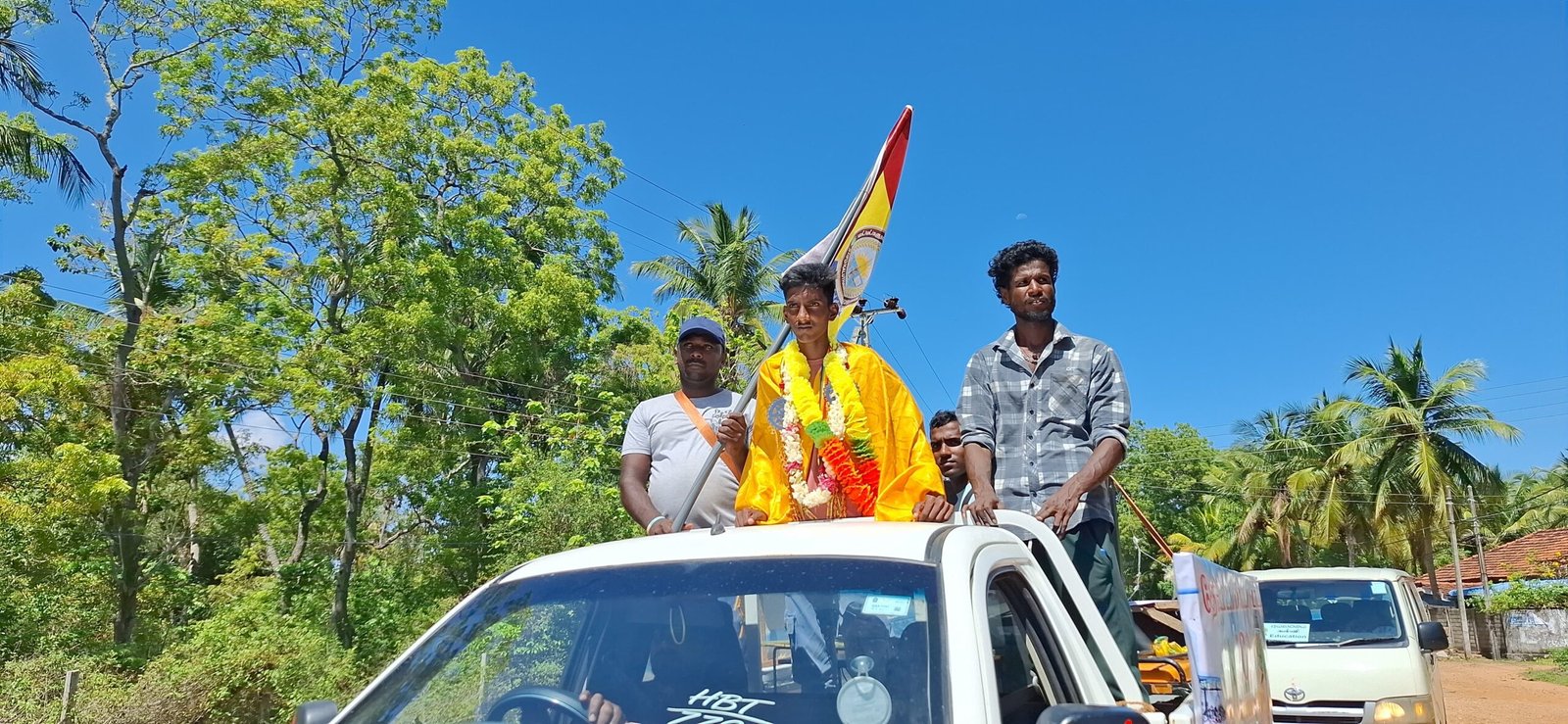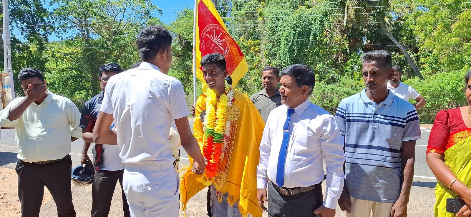 நேற்று திங்கட்கிழமை மலர் மாலை அணிவிக்கப்பட்டு, வாத்தியங்கள் முழங்க வரவேற்கப்பட்டு, பின்னர் பாடசாலையின் ஒன்றுகூடல் மண்டபத்தில் வைத்து பாராட்டு விழாவும் நடைபெற்றது.