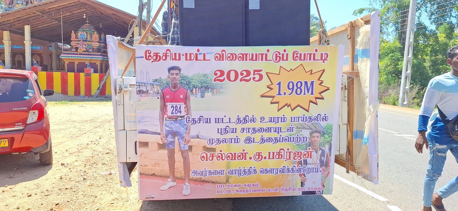 இலங்கையில் பாசாலைகளுக்கிடையிலான 16 வயதிற்குட்பட்ட ஆண்களுக்கான உயரம் பாய்தல் போட்டியில் 1.98 மீற்றர் உயரம் பாய்ந்து தங்கப்பதக்கம் பெற்ற பகிர்ஜனை, பாடாசாலைக் சமூகம் மற்றும் பொது அமைப்புக்கள் என பலரும் மாலை அணிவித்து, பொன்னாடை போர்த்தி, பணப் பரிசும் வழங்கி கௌரவித்தனர்.
