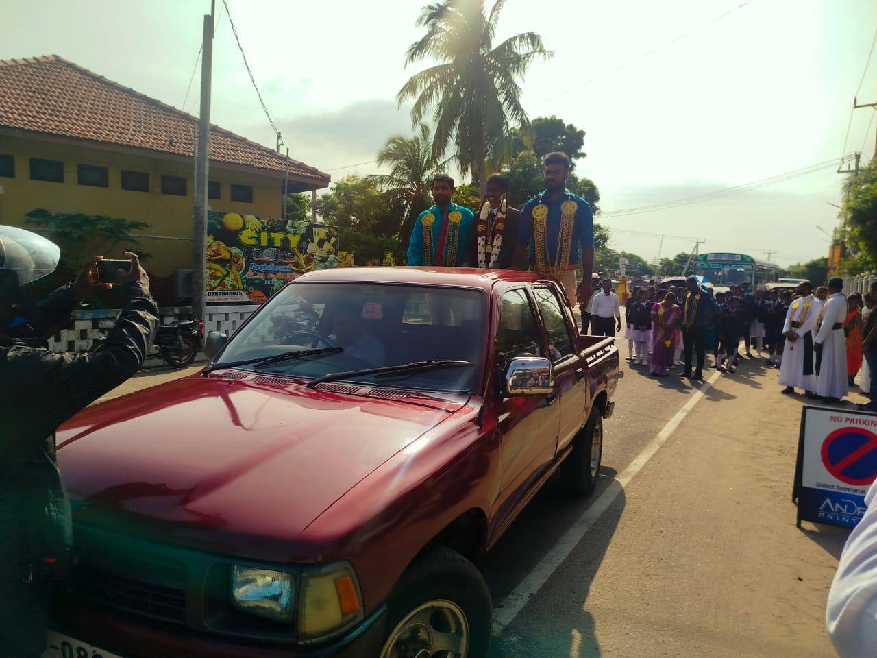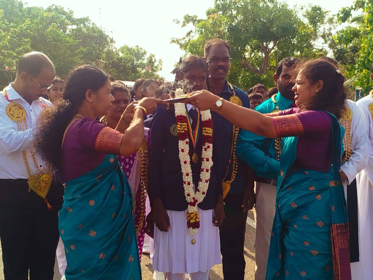 தேசிய சாதனை படைத்த மாணவியை கௌரவிக்கும் நோக்கில், பாடசாலை சமூகம் மற்றும் கிராம மக்கள் மாணவியை மன்னார் நுழைவுப் பாலத்தில் இருந்து சுமார் 15 கிலோமீட்டர் தூரம் வாகன பவனியாக பேசாலை வரை வரவேற்று பேசாலை பிரதான சந்தியில் இருந்து பேண்ட் வாத்தியம் மற்றும் நாட்டுப்புற நடன நிகழ்வுடன் வரவேற்று பாடசாலை அரங்கில் கௌரவிப்பு நிகழ்வு இடம்பெற்றது.