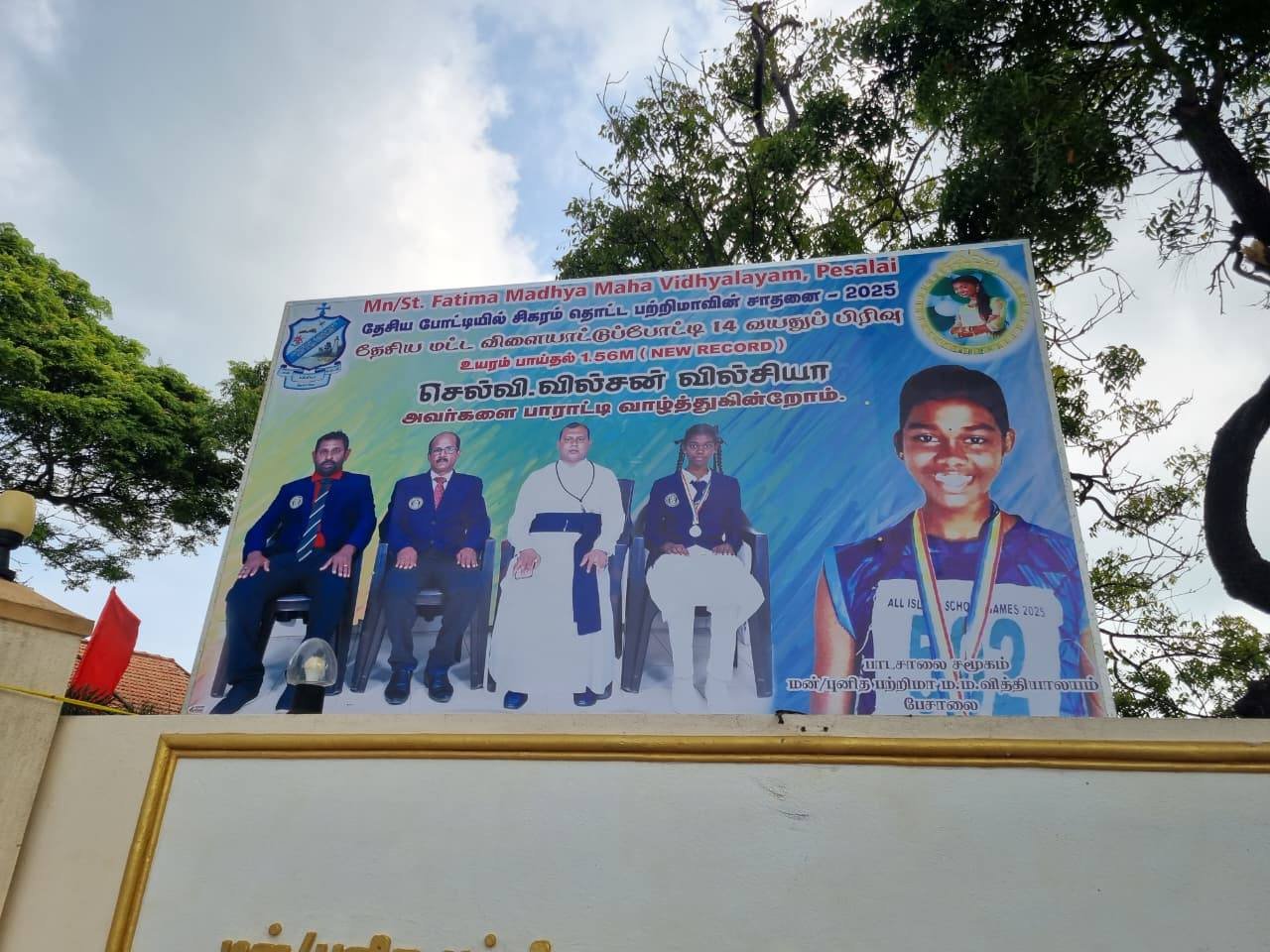 மன்னார் பிரதேச செயலாளர் பிரிவின் பேசாலை மன்/பற்றிமா மத்திய மகா வித்தியாலய மாணவி வில்சன் வில்சியா (14 வயது ) டயகம ராஜபக்ச விளையாட்டு மைதானத்தில் இடம்பெற்ற பாடசாலைகளுக்கு இடையிலான 38 வது தேசிய மட்ட போட்டியில் கலந்து கொண்டு சாதனை படைத்துள்ளார்.