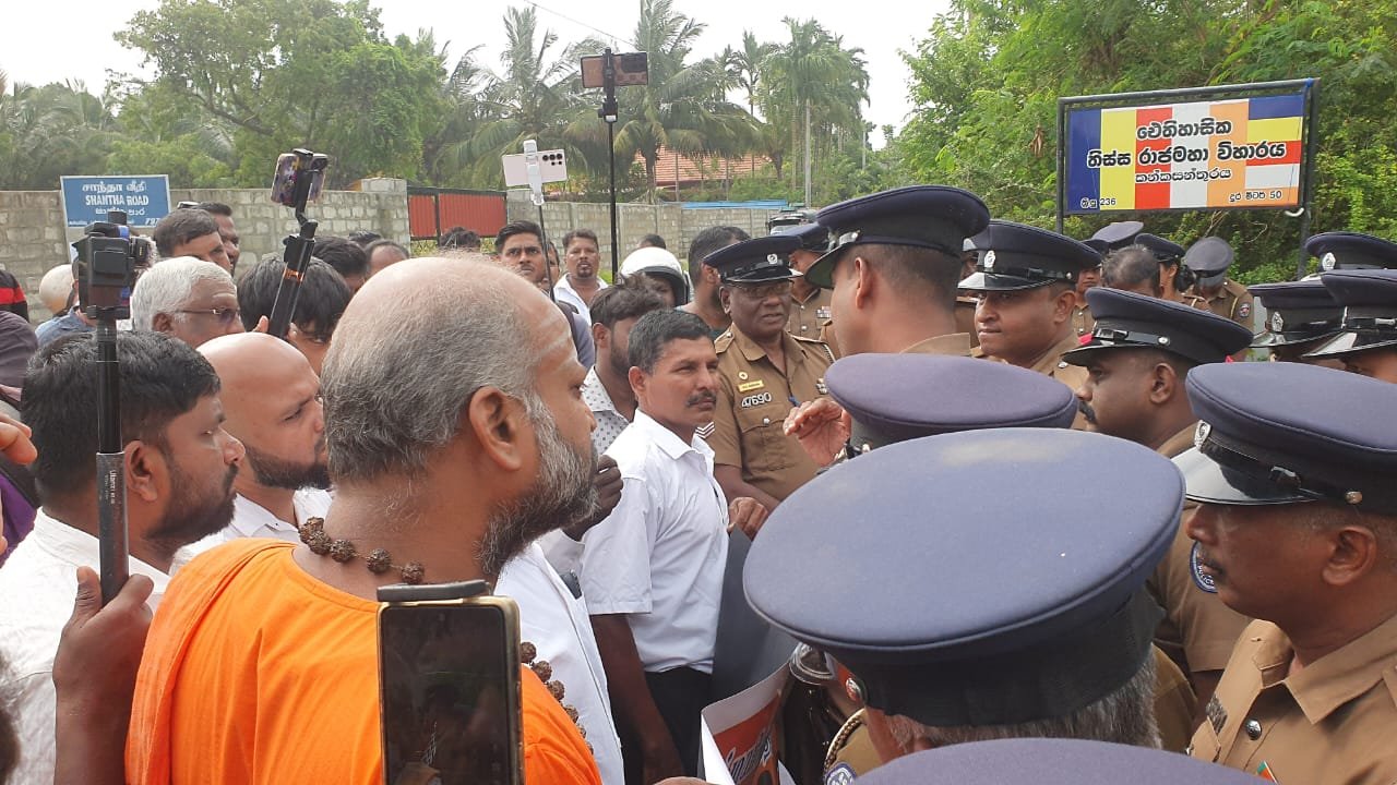 இந்நிலையில், இன்று போராட்டம் முன்னெடுக்கப்பட்ட வேளையில், விகாரையை அண்மித்த சூழலில் கலகம் அடக்கும் பொலிஸார் உட்படப் பெருமளவான பொலிஸார் குவிக்கப்பட்டனர்.