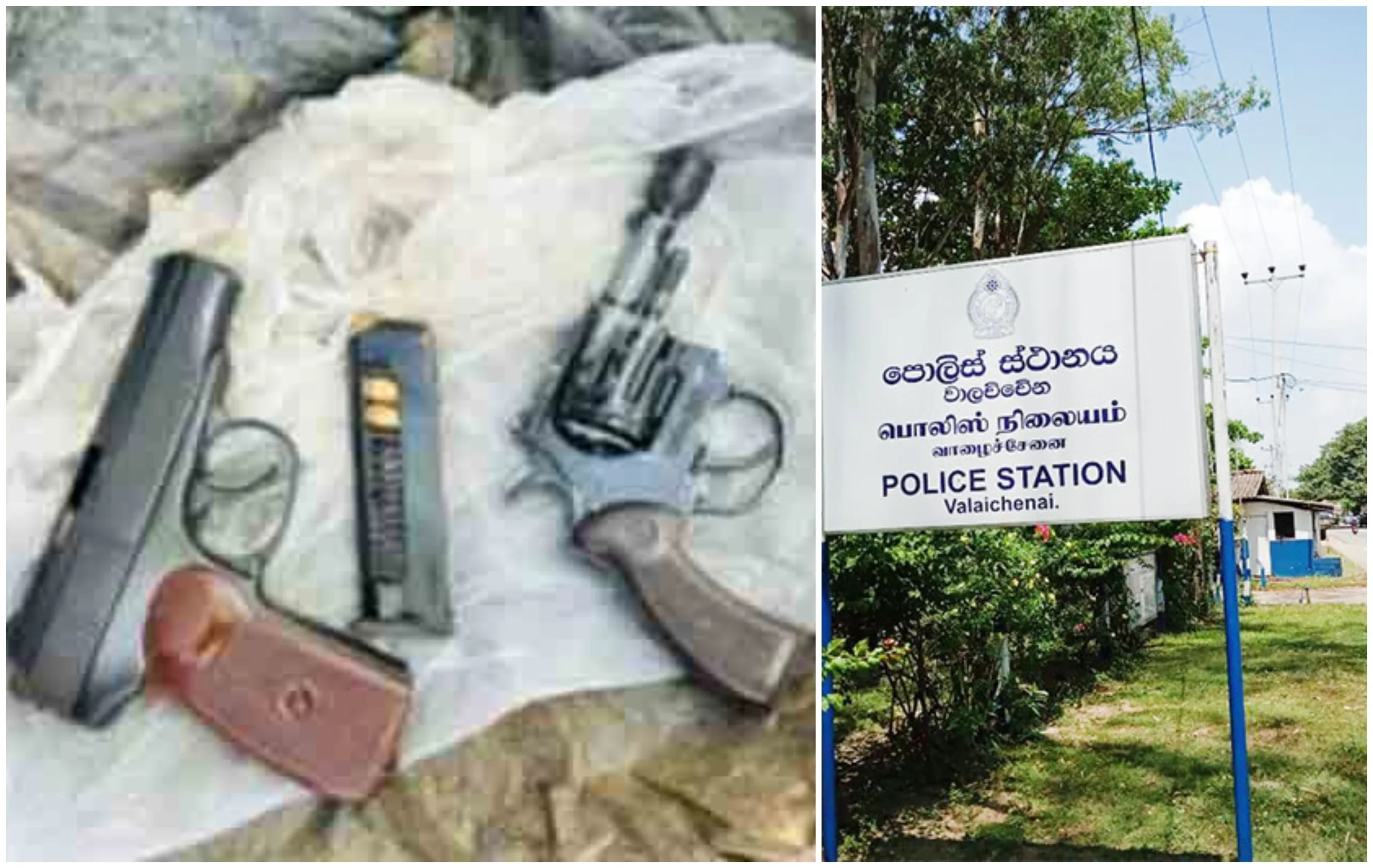 மட்டக்களப்பு – பொலன்னறுவை பிரதான வீதியில், வாழைச்சேனைப் பகுதியில் உள்ள தொலைபேசிக் கம்பம் ஒன்றில் இருந்து 2 துப்பாக்கிகள் கைப்பற்றப்பட்டுள்ளதாக காவல்துறையினர் தெரிவித்தனர்.