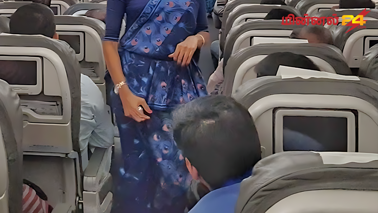 இதன்போது, விமான பணிப்பெண்கள் சம்பவத்தை விமானிக்கு தெரிவித்ததை அடுத்து, விமான கட்டுப்பாட்டு அறைக்கு தகவல் அளிக்க நடவடிக்கை எடுக்கப்பட்டது.