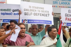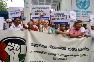 பலஸ்தீன மக்கள் மீது இஸ்ரேல் மேற்கொண்டுள்ள இனப்படுகொலையை நிறுத்துமாறும் , யுத்தத்தை நிறுத்துமாறும் கோரி சுதந்திர பலஸ்தீனத்துக்கான கூட்டு எதிர்க்கட்சிகளின் பிரதிநிதிகள் இன்று (14) வியாழக்கிழமை கொழும்பில் உள்ள ஐ. நா. அலுவலகத்தின் முன்னால் ஒன்றுகூடி பலத்த எதிர்ப்பைத் தெரிவித்தனர்.
