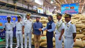 நிவாரண உதவிப் பொருட்களை எடுத்து வந்த இந்திய கடற்படை போர்க்கப்பல்